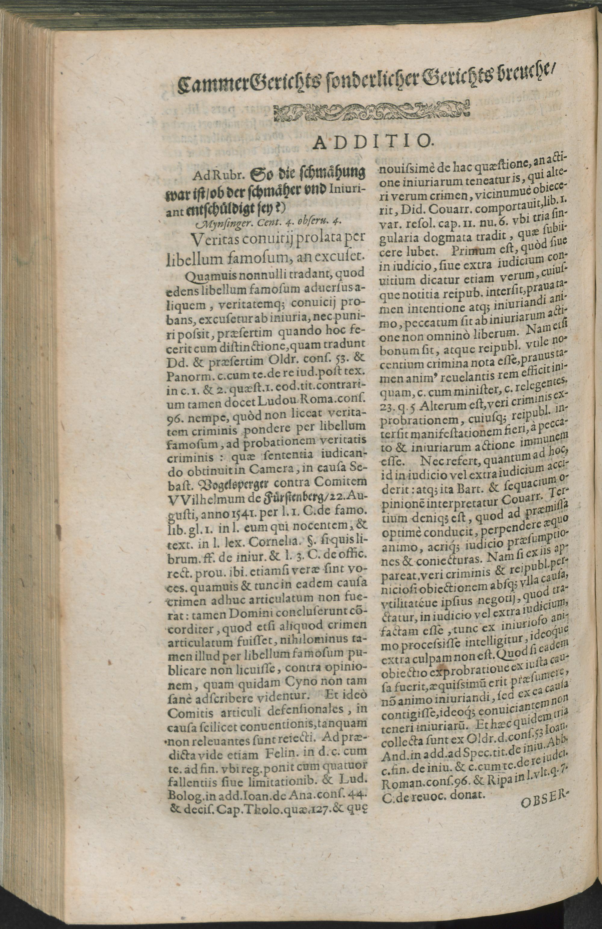 Camerae Imperialis Observationes / Alles hiebevorn durch ... Herrn Andream Gaill der Rechten Doct. ... in einem Opere beysam im Latein beschrieben. Itzo aber gemeinen nutz und die Iusticiam zu befördern in die Teutsche Sprache transferirt und ubergesetzet Durch Thobiam Loncium der Rechten Licentiaten. Was die Herrn Praesidenten unnd Assessores im Keyserlichen CammerGerichte selber von diesen operibus oder Büchern zeugen/ und was sonsten von denselben zu halten/ Auch was uns Teutschen solche nützen: Item/ welcher gestalt die Observationes Herrn Doctoris Joachimi Mynsingeri pro Additione darbey eingeführet werden/ solches alles hat der günstige Leser auß der Vorrede lenglich zuvernehmen. Zu ende mit angehengeten Summarischen Register uber alle Bücher/ Observationen und Capitteln