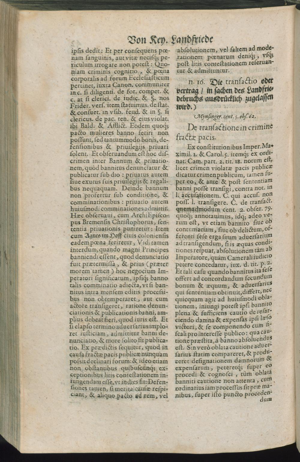 Camerae Imperialis Observationes / Alles hiebevorn durch ... Herrn Andream Gaill der Rechten Doct. ... in einem Opere beysam im Latein beschrieben. Itzo aber gemeinen nutz und die Iusticiam zu befördern in die Teutsche Sprache transferirt und ubergesetzet Durch Thobiam Loncium der Rechten Licentiaten. Was die Herrn Praesidenten unnd Assessores im Keyserlichen CammerGerichte selber von diesen operibus oder Büchern zeugen/ und was sonsten von denselben zu halten/ Auch was uns Teutschen solche nützen: Item/ welcher gestalt die Observationes Herrn Doctoris Joachimi Mynsingeri pro Additione darbey eingeführet werden/ solches alles hat der günstige Leser auß der Vorrede lenglich zuvernehmen. Zu ende mit angehengeten Summarischen Register uber alle Bücher/ Observationen und Capitteln