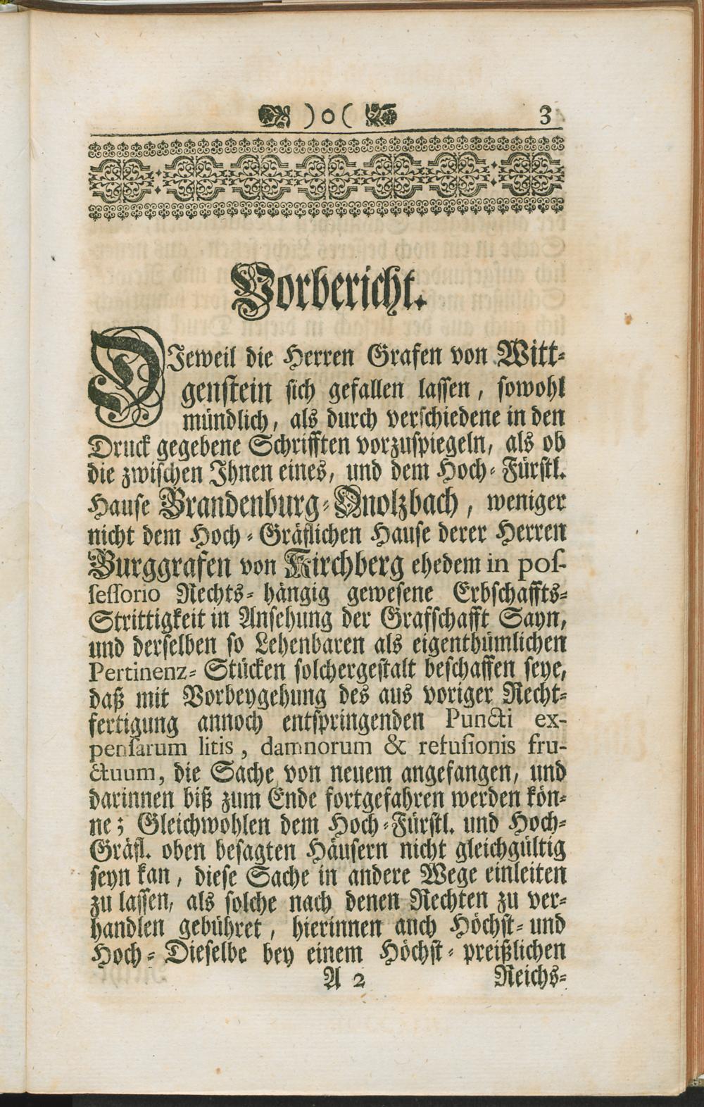 Rechts-gegründetes Bedencken, Worinnen ausgeführet worden, Daß denen Herren Grafen von Wittgenstein, Wegen Ihrer Praetension, so Dieselbe Auf die Reichs-Grafschafft Sayn machen, Nondum plene liberato spolio & solutis expensis, Keine Rechtliche Action gebühre, ... : nebst Beylagen ... und einem Anhang, welcher ... enthält / [Heinrich Christian von Senckenberg]