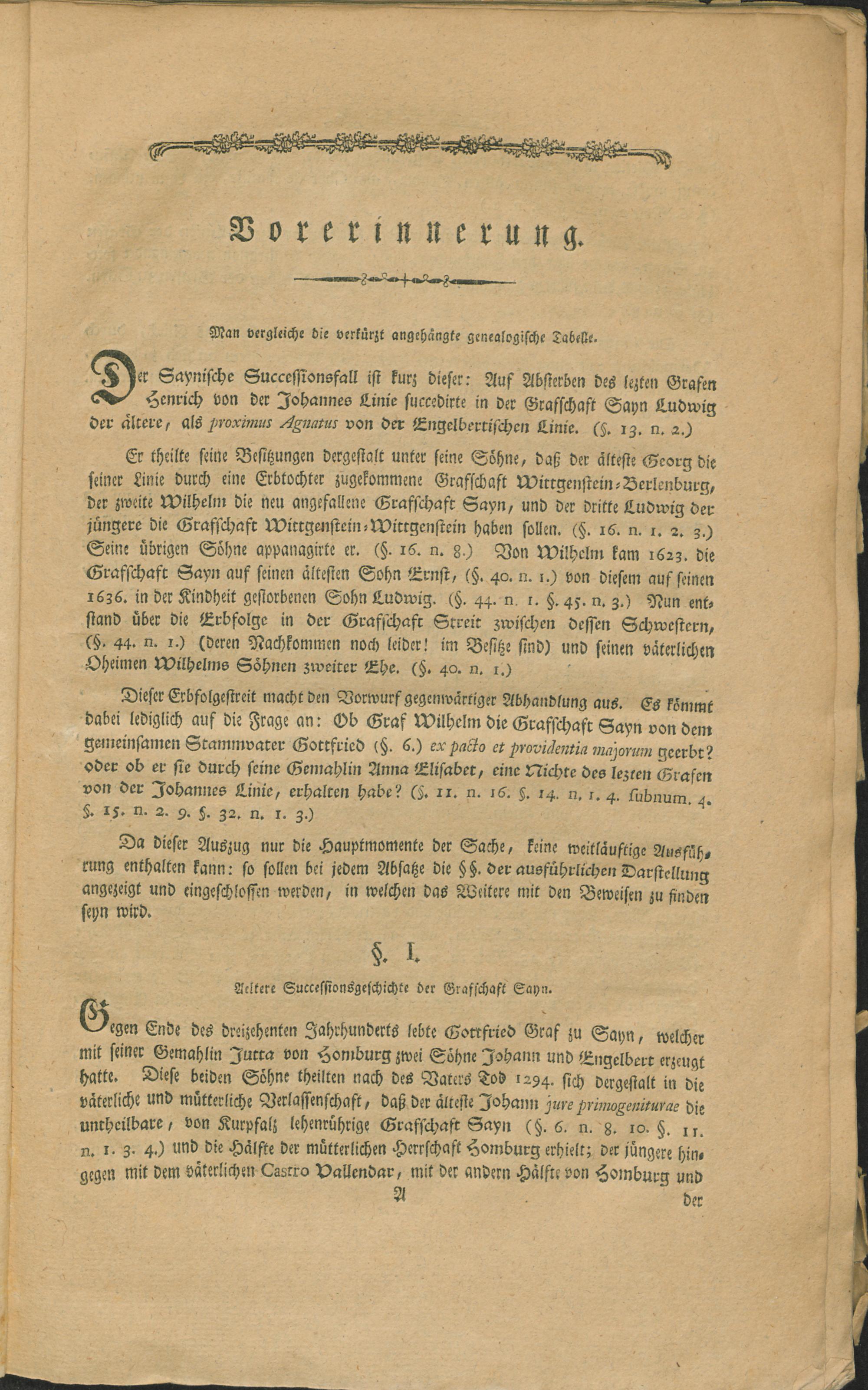 Kurze Uebersicht der ausführlichen Darstellung der in dem Mannlehen der Grafschaft Sayn und den dieser incorporirten Erblehen sowohl, als Allodial- und Stammgütern dem Engelbertischen Mannstamme der Herren Grafen zu Sayn-Wittgenstein nach dem alten Gewohnheitsrechte des hohen Adels, den besonderen Erbvereinen, und den deutschen sowohl, als gemeinen Lehenrechten, mit Ausschließung der Ernestinischen Frauen Töchter und Ihrer Fürstlich- und Gräflichen Nachkommen allein zustehenden Erbfolge / verfasset von Joseph Aloys Ferdinand Haas