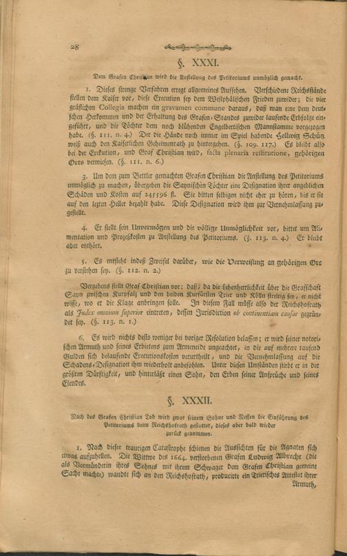 Kurze Uebersicht der ausführlichen Darstellung der in dem Mannlehen der Grafschaft Sayn und den dieser incorporirten Erblehen sowohl, als Allodial- und Stammgütern dem Engelbertischen Mannstamme der Herren Grafen zu Sayn-Wittgenstein nach dem alten Gewohnheitsrechte des hohen Adels, den besonderen Erbvereinen, und den deutschen sowohl, als gemeinen Lehenrechten, mit Ausschließung der Ernestinischen Frauen Töchter und Ihrer Fürstlich- und Gräflichen Nachkommen allein zustehenden Erbfolge / verfasset von Joseph Aloys Ferdinand Haas