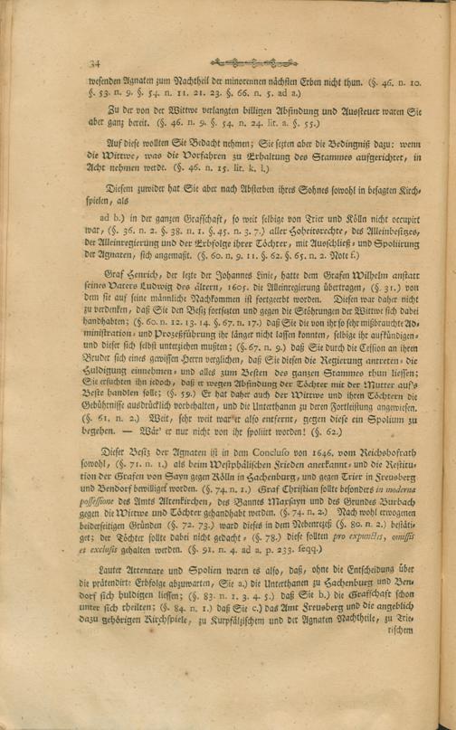 Kurze Uebersicht der ausführlichen Darstellung der in dem Mannlehen der Grafschaft Sayn und den dieser incorporirten Erblehen sowohl, als Allodial- und Stammgütern dem Engelbertischen Mannstamme der Herren Grafen zu Sayn-Wittgenstein nach dem alten Gewohnheitsrechte des hohen Adels, den besonderen Erbvereinen, und den deutschen sowohl, als gemeinen Lehenrechten, mit Ausschließung der Ernestinischen Frauen Töchter und Ihrer Fürstlich- und Gräflichen Nachkommen allein zustehenden Erbfolge / verfasset von Joseph Aloys Ferdinand Haas