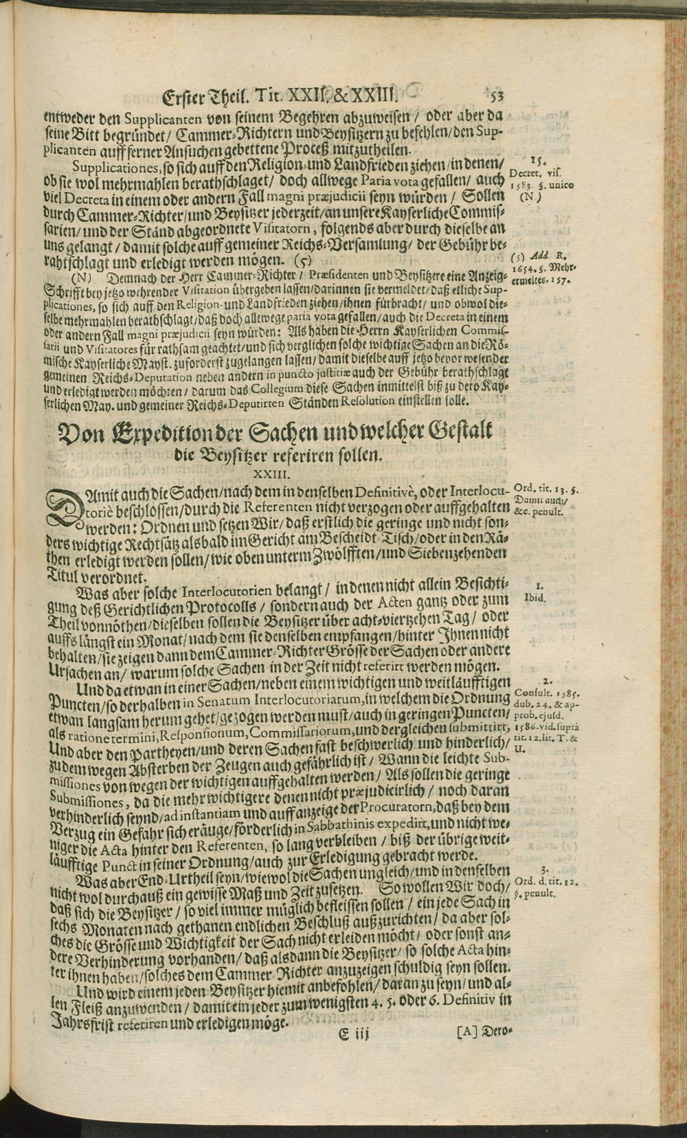 Concept Deren aus Befelch Der Kays. Majestät durch Cammer-Richter/ Präsidenten und Beysitzere des Käyserlichen Cammer-Gerichts/ Auff Jhrer Majestät und der sämptlichen des Heil. Reichs Ständen Approbation Anno MDCXIII. erneuerten und verbesserten Cammer-Gerichts Ordnung