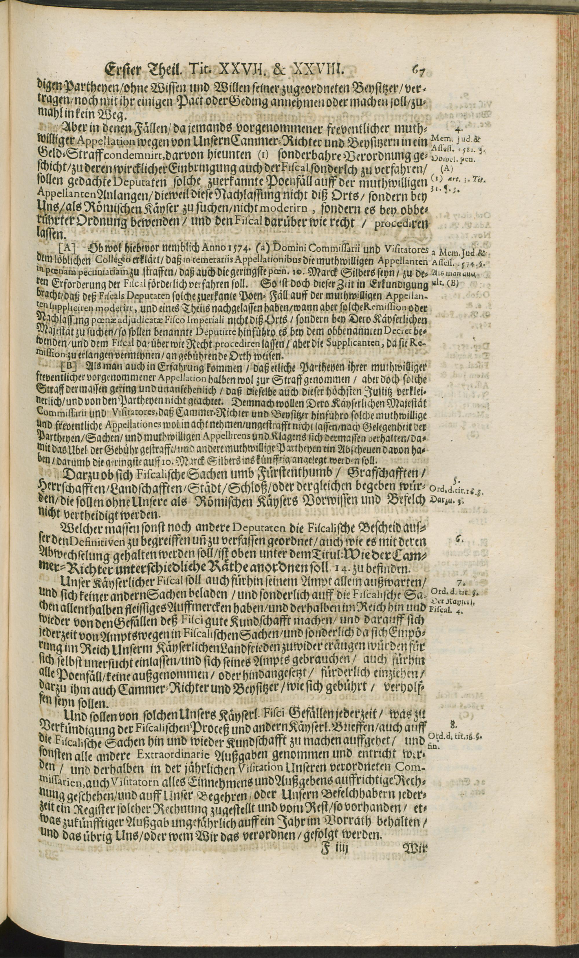 Concept Deren aus Befelch Der Kays. Majestät durch Cammer-Richter/ Präsidenten und Beysitzere des Käyserlichen Cammer-Gerichts/ Auff Jhrer Majestät und der sämptlichen des Heil. Reichs Ständen Approbation Anno MDCXIII. erneuerten und verbesserten Cammer-Gerichts Ordnung