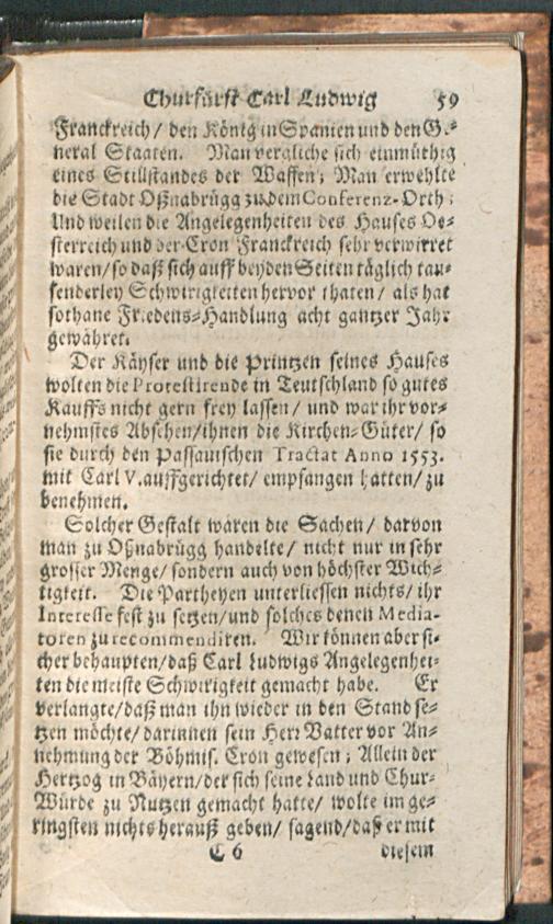 Lebens-Geschichte/ Der Weyland Durchleuchtigsten Churfürsten in der Pfaltz/ Friederich des V. Carl Ludwigs/ und Carls : Worinnen Die Böhmische Unruhe/ der Dreyssig-jährige Krieg/ die Vicariat- und Wildfangs-Sache/ des Chur-Fürsten Carl Ludwig Liebes-Händel mit der Baronessin von Degenfeld/ und die Langhänsische Sache Durch einen gantz kurtzen Begriff annehmlich beschrieben werden / [Immanuel Weber]