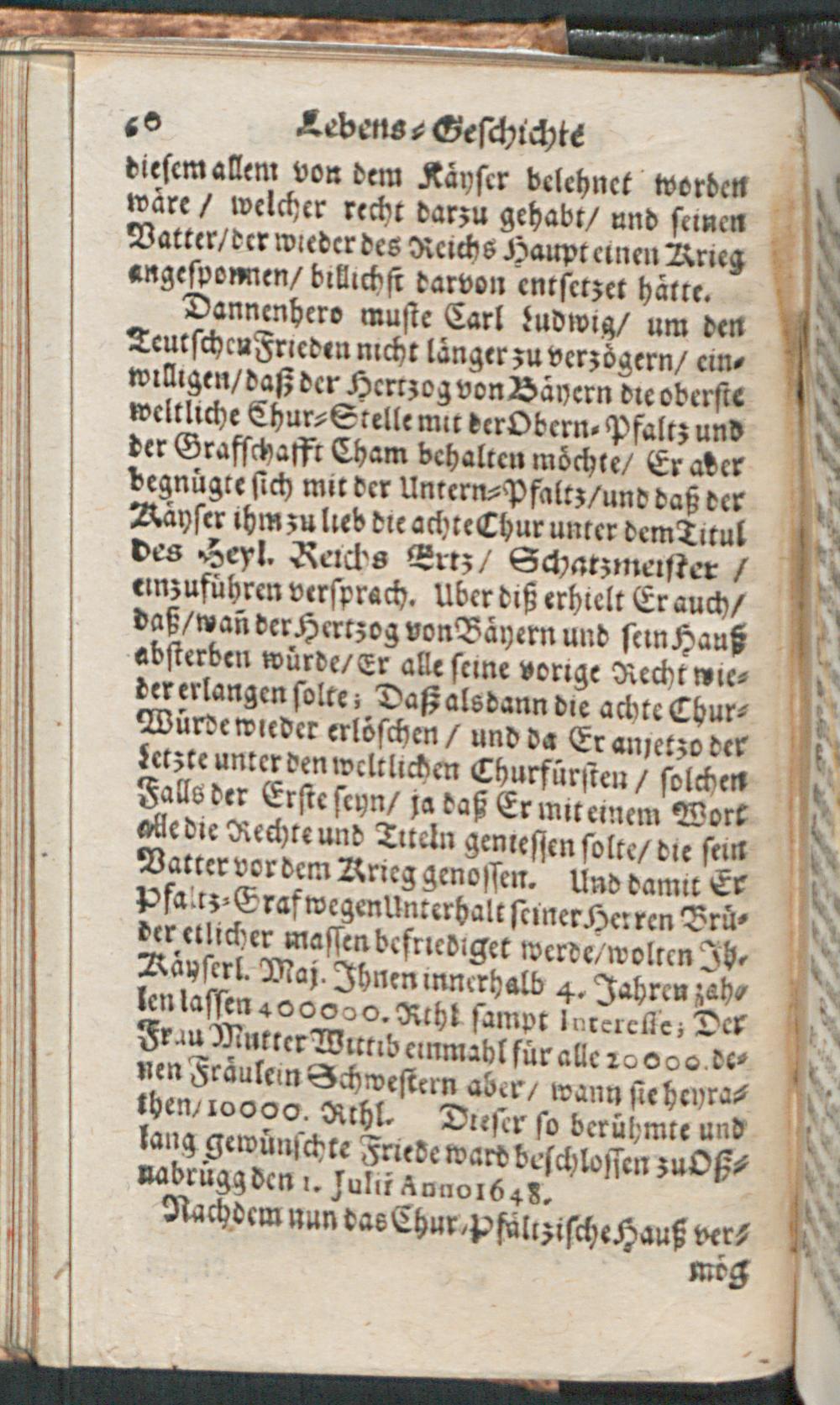 Lebens-Geschichte/ Der Weyland Durchleuchtigsten Churfürsten in der Pfaltz/ Friederich des V. Carl Ludwigs/ und Carls : Worinnen Die Böhmische Unruhe/ der Dreyssig-jährige Krieg/ die Vicariat- und Wildfangs-Sache/ des Chur-Fürsten Carl Ludwig Liebes-Händel mit der Baronessin von Degenfeld/ und die Langhänsische Sache Durch einen gantz kurtzen Begriff annehmlich beschrieben werden / [Immanuel Weber]