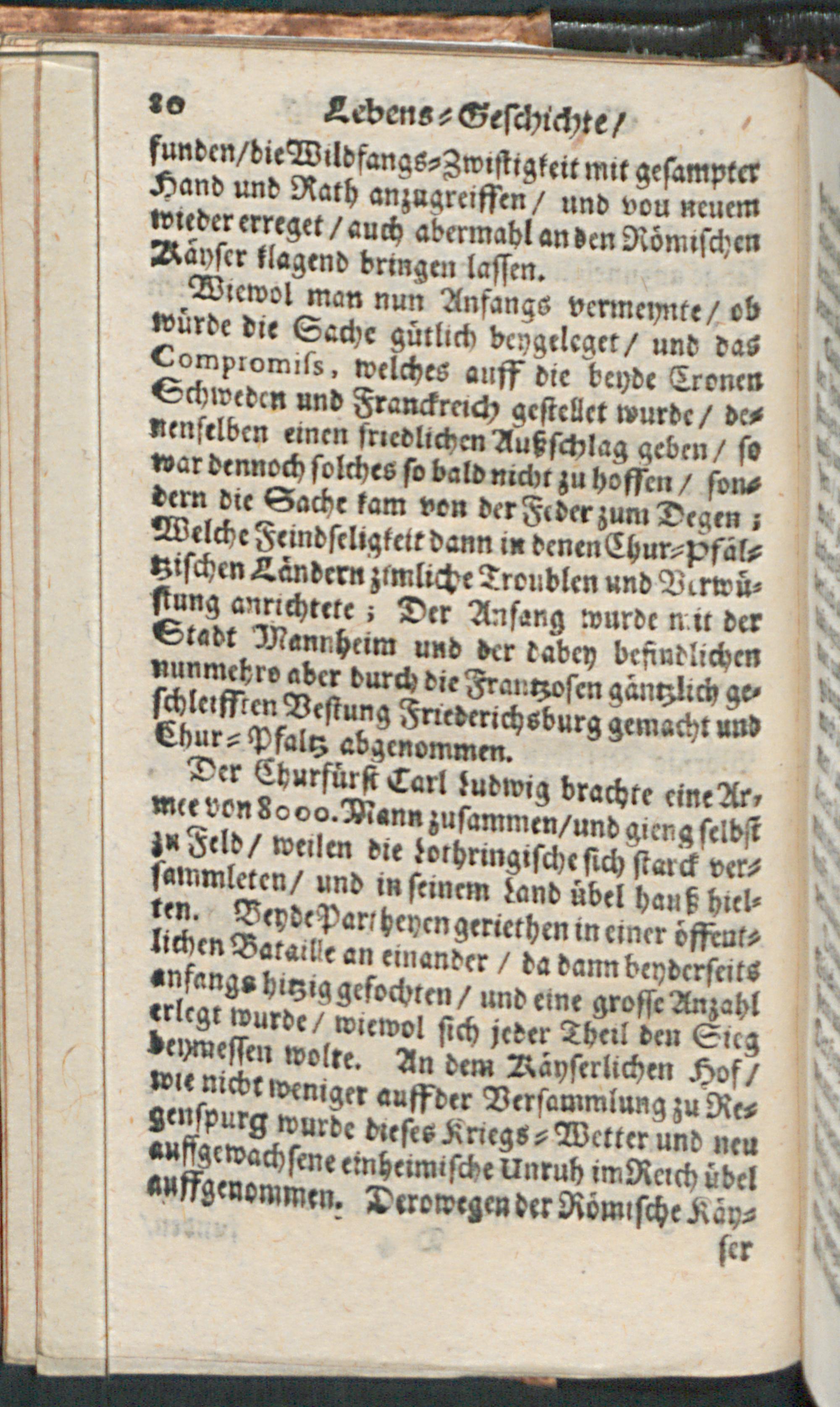 Lebens-Geschichte/ Der Weyland Durchleuchtigsten Churfürsten in der Pfaltz/ Friederich des V. Carl Ludwigs/ und Carls : Worinnen Die Böhmische Unruhe/ der Dreyssig-jährige Krieg/ die Vicariat- und Wildfangs-Sache/ des Chur-Fürsten Carl Ludwig Liebes-Händel mit der Baronessin von Degenfeld/ und die Langhänsische Sache Durch einen gantz kurtzen Begriff annehmlich beschrieben werden / [Immanuel Weber]
