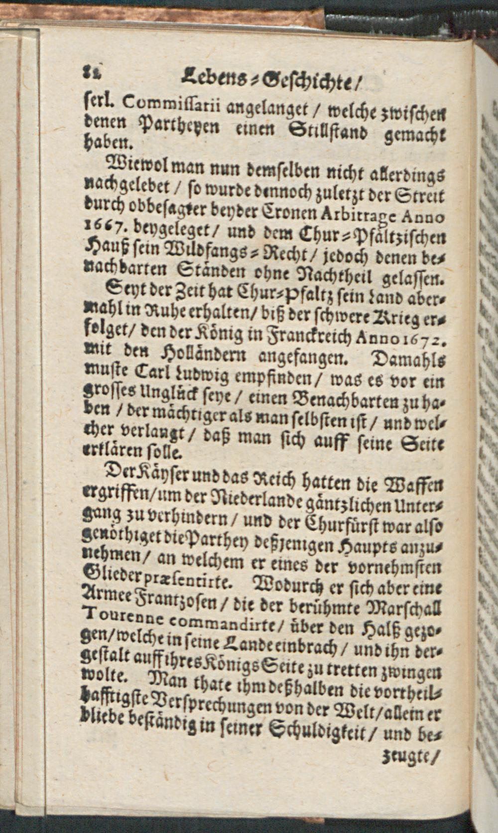 Lebens-Geschichte/ Der Weyland Durchleuchtigsten Churfürsten in der Pfaltz/ Friederich des V. Carl Ludwigs/ und Carls : Worinnen Die Böhmische Unruhe/ der Dreyssig-jährige Krieg/ die Vicariat- und Wildfangs-Sache/ des Chur-Fürsten Carl Ludwig Liebes-Händel mit der Baronessin von Degenfeld/ und die Langhänsische Sache Durch einen gantz kurtzen Begriff annehmlich beschrieben werden / [Immanuel Weber]