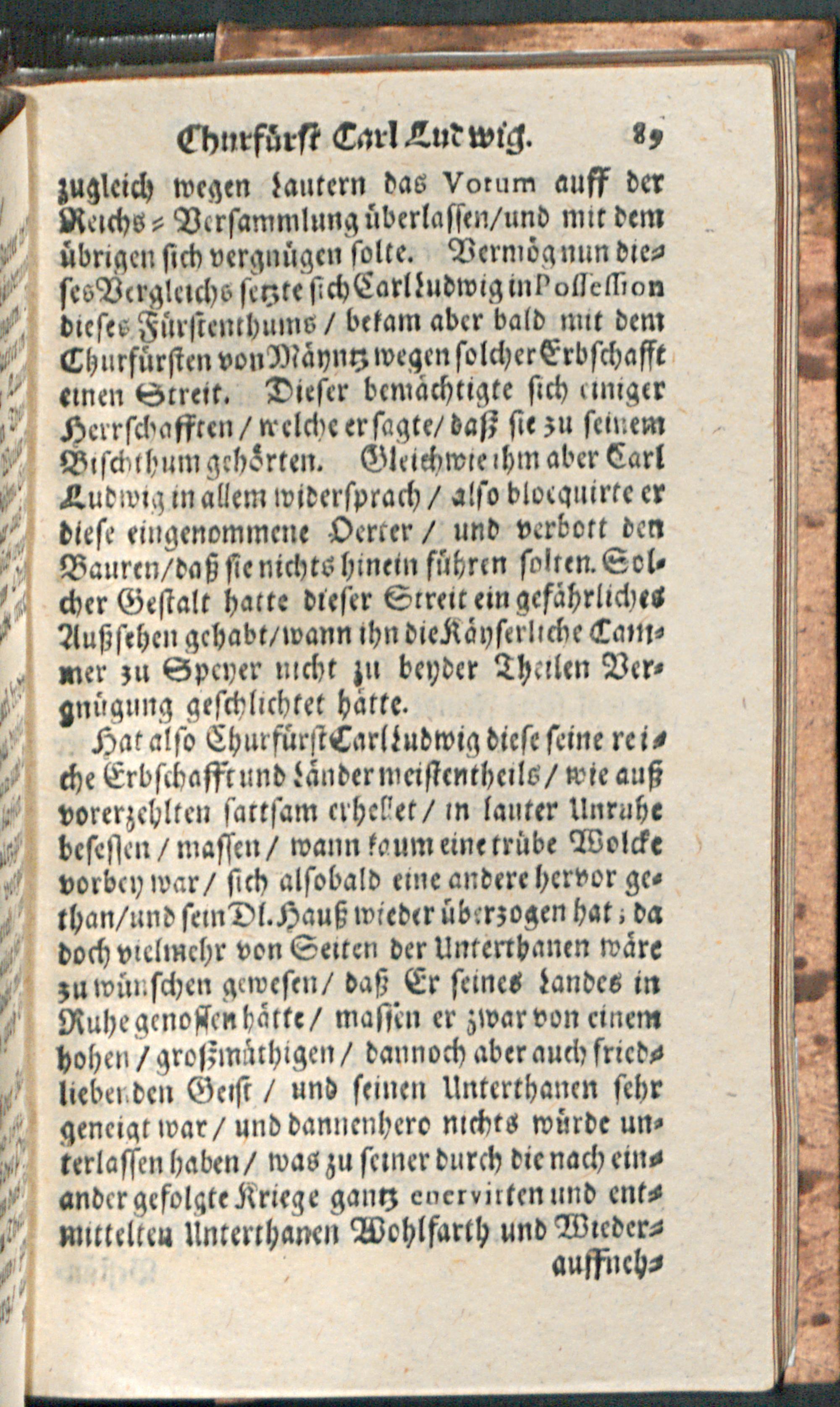 Lebens-Geschichte/ Der Weyland Durchleuchtigsten Churfürsten in der Pfaltz/ Friederich des V. Carl Ludwigs/ und Carls : Worinnen Die Böhmische Unruhe/ der Dreyssig-jährige Krieg/ die Vicariat- und Wildfangs-Sache/ des Chur-Fürsten Carl Ludwig Liebes-Händel mit der Baronessin von Degenfeld/ und die Langhänsische Sache Durch einen gantz kurtzen Begriff annehmlich beschrieben werden / [Immanuel Weber]