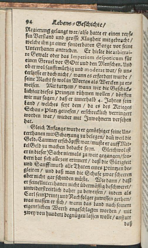 Lebens-Geschichte/ Der Weyland Durchleuchtigsten Churfürsten in der Pfaltz/ Friederich des V. Carl Ludwigs/ und Carls : Worinnen Die Böhmische Unruhe/ der Dreyssig-jährige Krieg/ die Vicariat- und Wildfangs-Sache/ des Chur-Fürsten Carl Ludwig Liebes-Händel mit der Baronessin von Degenfeld/ und die Langhänsische Sache Durch einen gantz kurtzen Begriff annehmlich beschrieben werden / [Immanuel Weber]