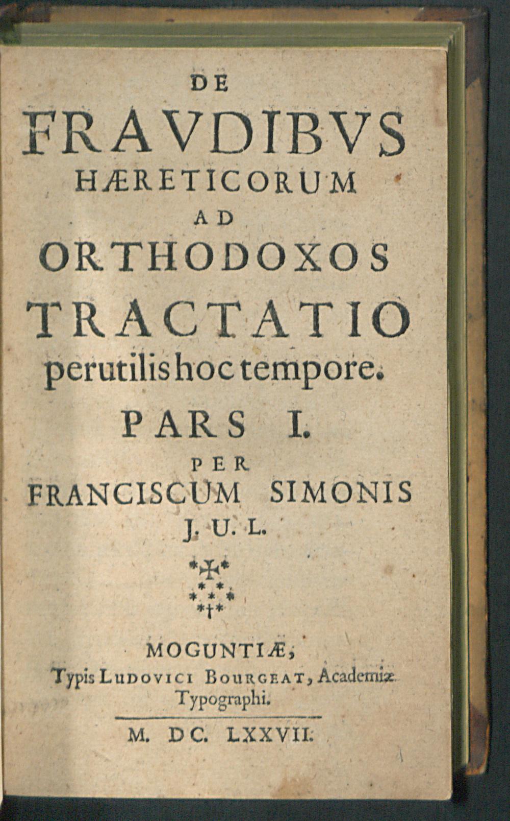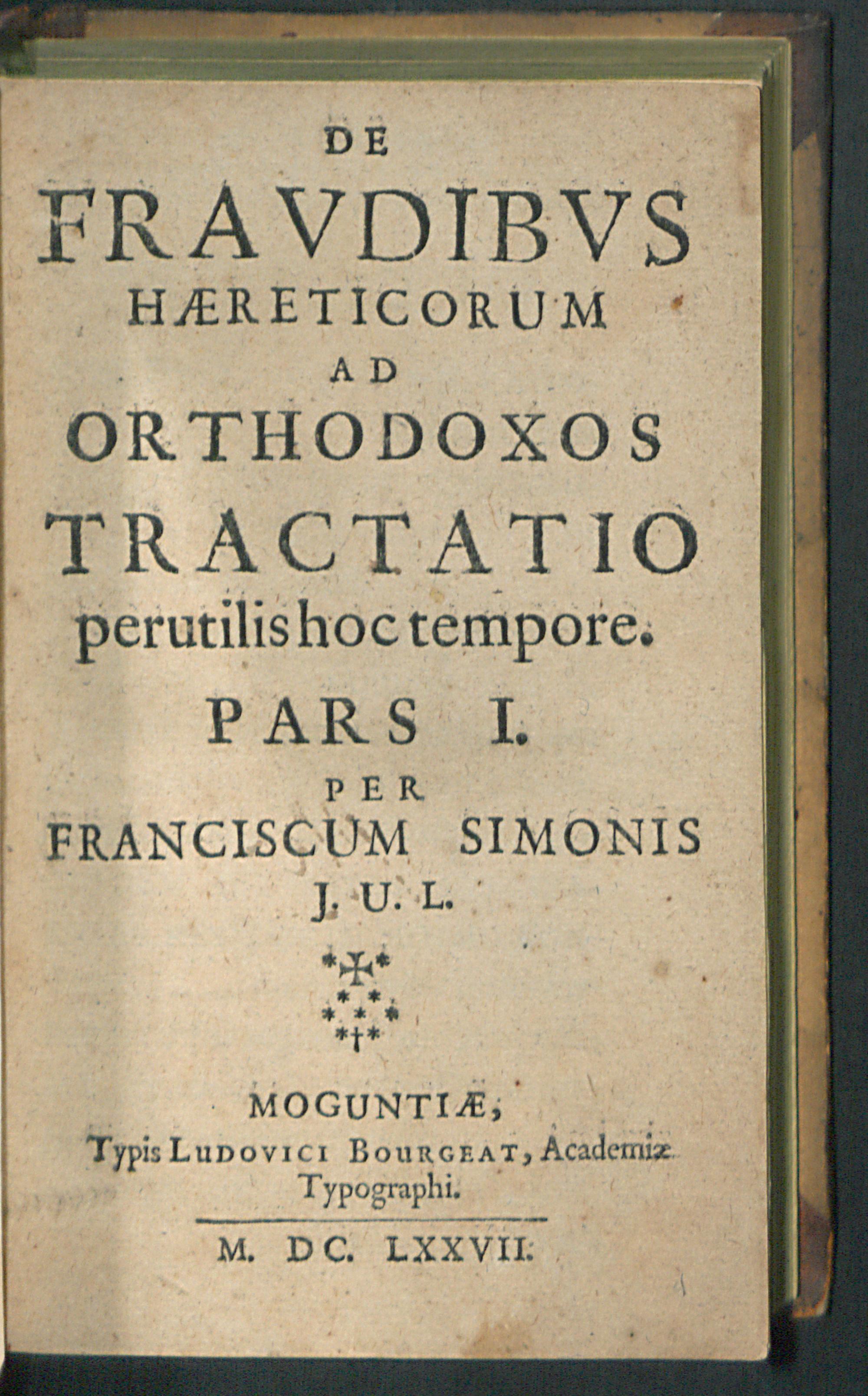 De Fravdibvs Haereticorum Ad Orthodoxos Tractatio perutilis hoc tempore