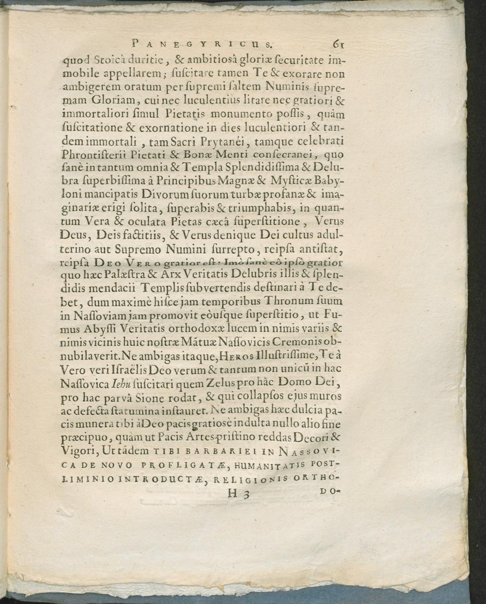 Ludovicus Henricus Nassovius. Sive Panegyricus, Celsissimo Principi Ac Domino, D. Ludovico Henrico, Nassoviae Principi ... Dictus, Cùm gratias ei ageret nomine Senatus Academici, ob addita Herbornaeo nostro & Musarum aedibus recentia decora, Joannes Melchior Steinbergius. Calendis Augusti, quibus Fasces Academicos in se suscepit. A. MDCLXIX.