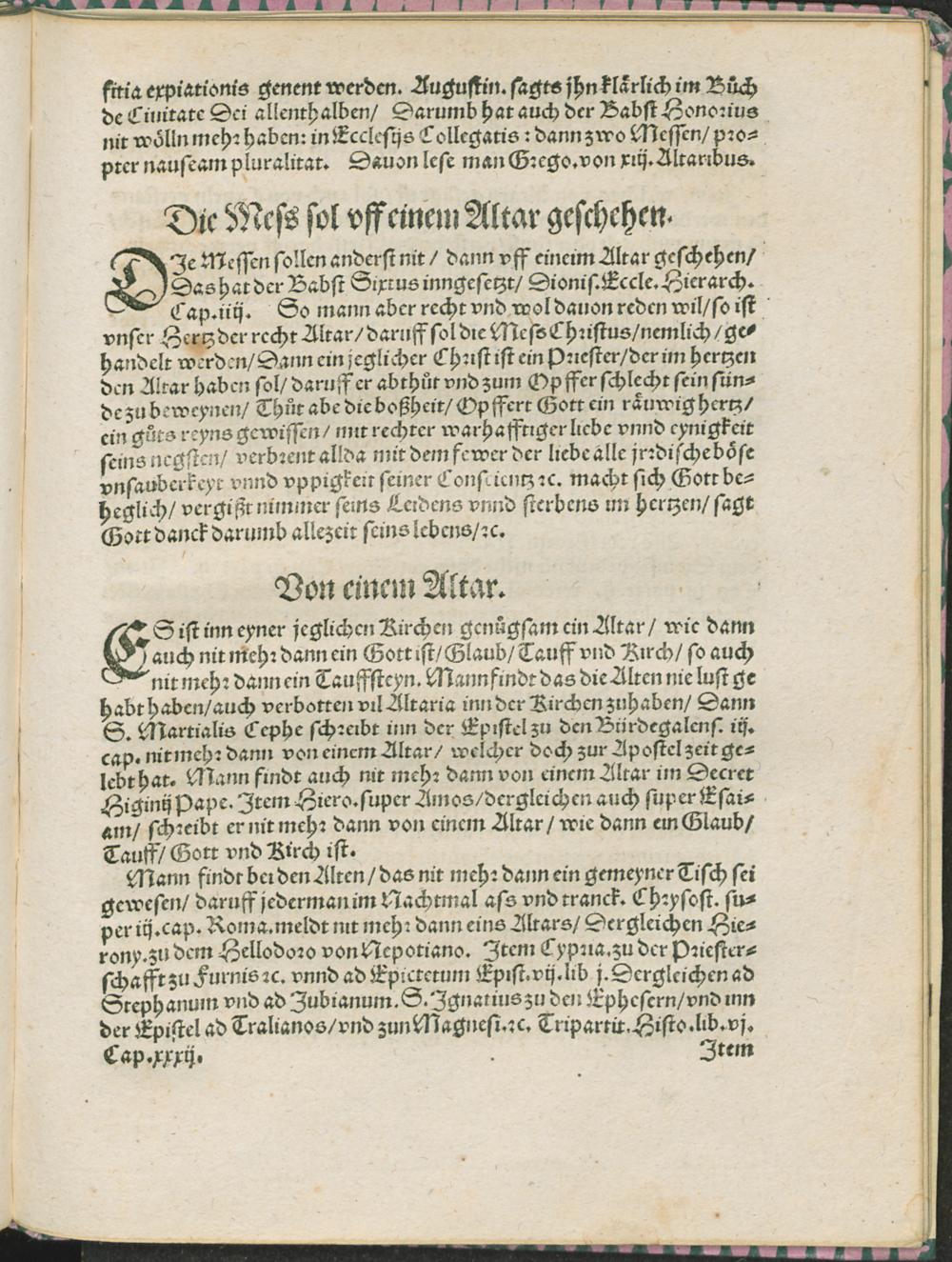 Miscellanea/ vnd ein war||hafftige Contrafactur/ der Rhömischen || kirchen Lyturgian oder Messen/ mit sampt || jrem alten herkom[m]en/ mit anhere vor das gröst Sacri=||ficium oder Opffer im Babsthum gehalten ... || Zusamen getragen durch Jodoc.|| Kinthisium Freinßheimerum/|| Vor nie also erlesen.||