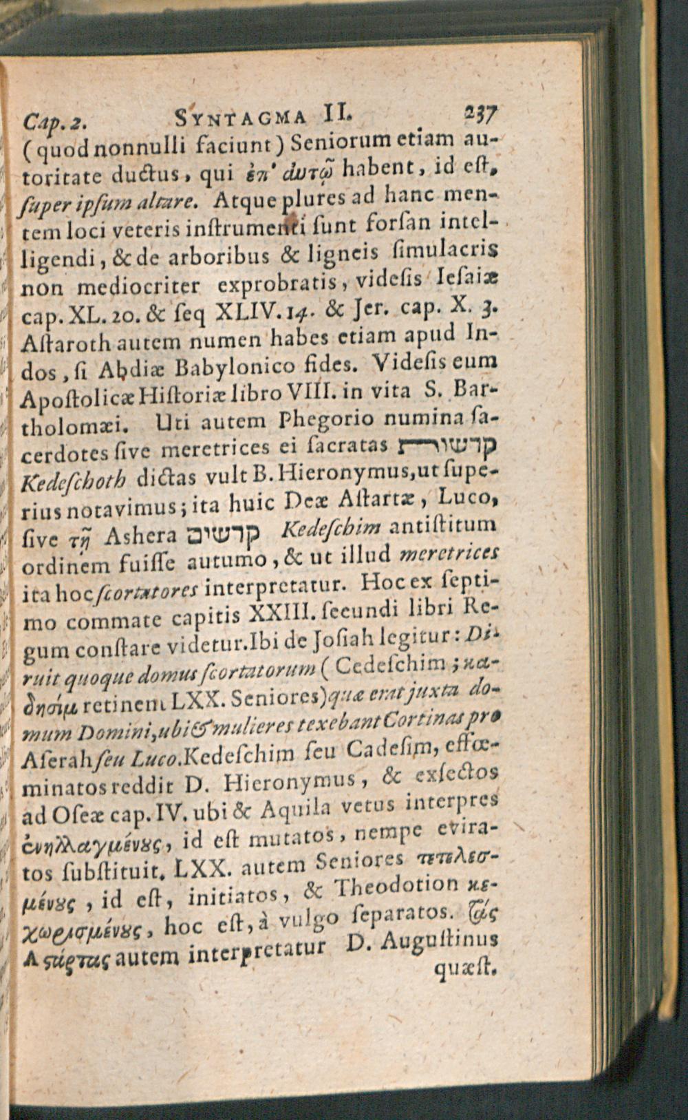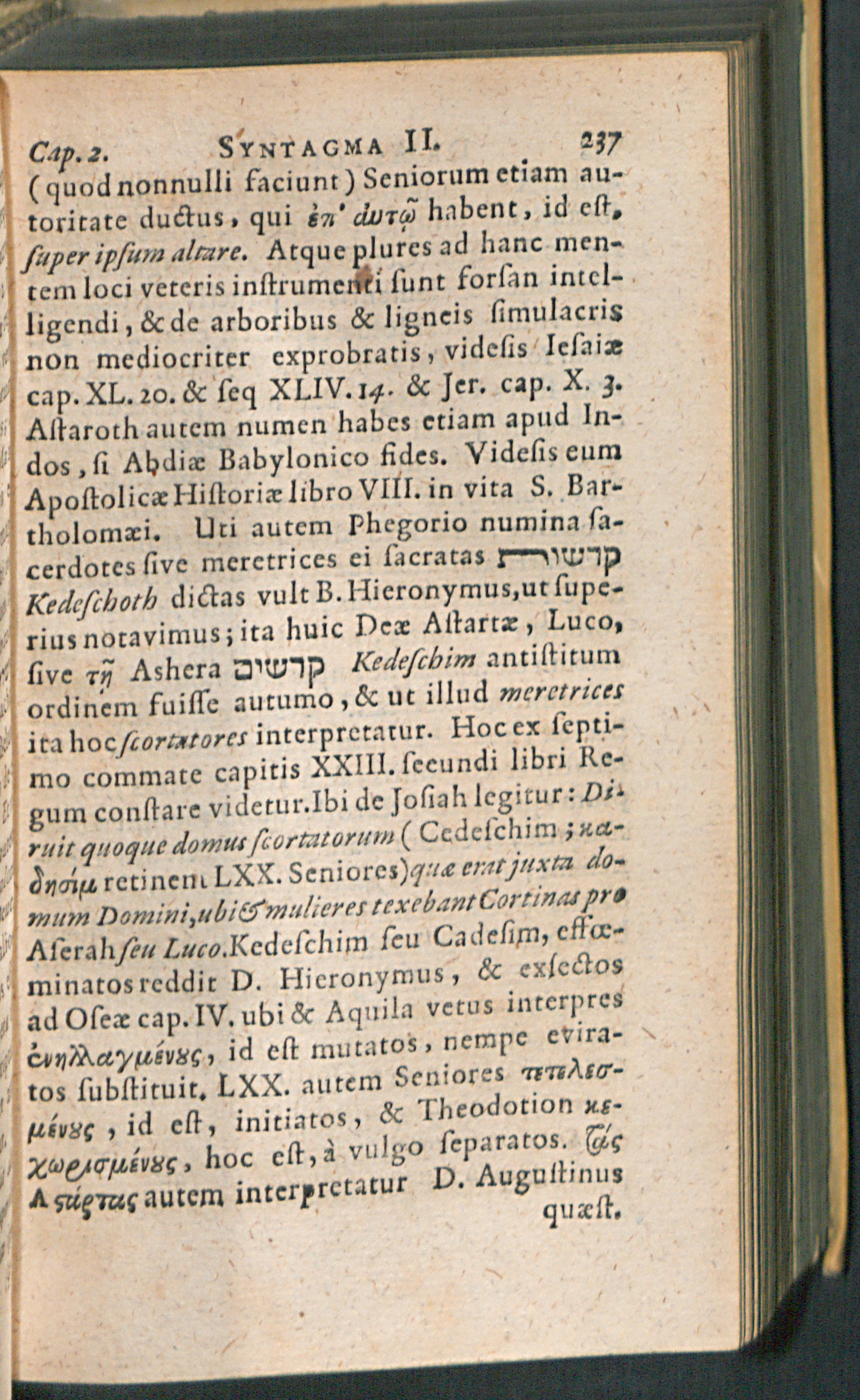 Joannis Seldeni J.C. De Di[i]s Syris Syntagmata II. Adversaria nempe de Numinibus commentitiis in Veteri Instrumento memoratis : Accedunt ferè quae sunt reliqua Syrorum. Prisca porrò Arabum, Aegyptiorum, Persarum, Afrorum, Europaeorum item Theologia, subinde illustratur ; Additamentis & Indicibus copiosissimis locupletata, operâ M. Andreae Beyeri