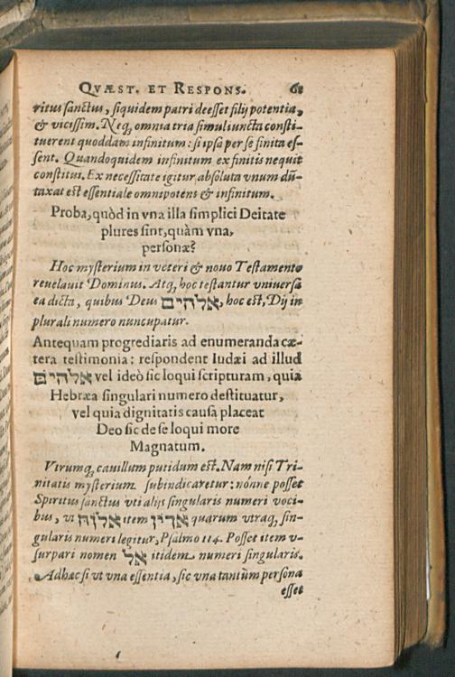 Articulus || DE TRINITATE,|| PER QVAESTIONES ET || RESPONSIONES PERTRACTATVS || SOLIDE, ET INDVBITATIS TESTIMONIIS || sacrarum literarum contra quasuis haereticorum ve-||terum & recentium blasphemas strophas & || corruptelas firmissimè com-||munitus.|| / AVCTORE || EGIDIO HVNNIO, S. THEOLOGIAE || Doctore et Professore in Academia || Marpurgensi.||