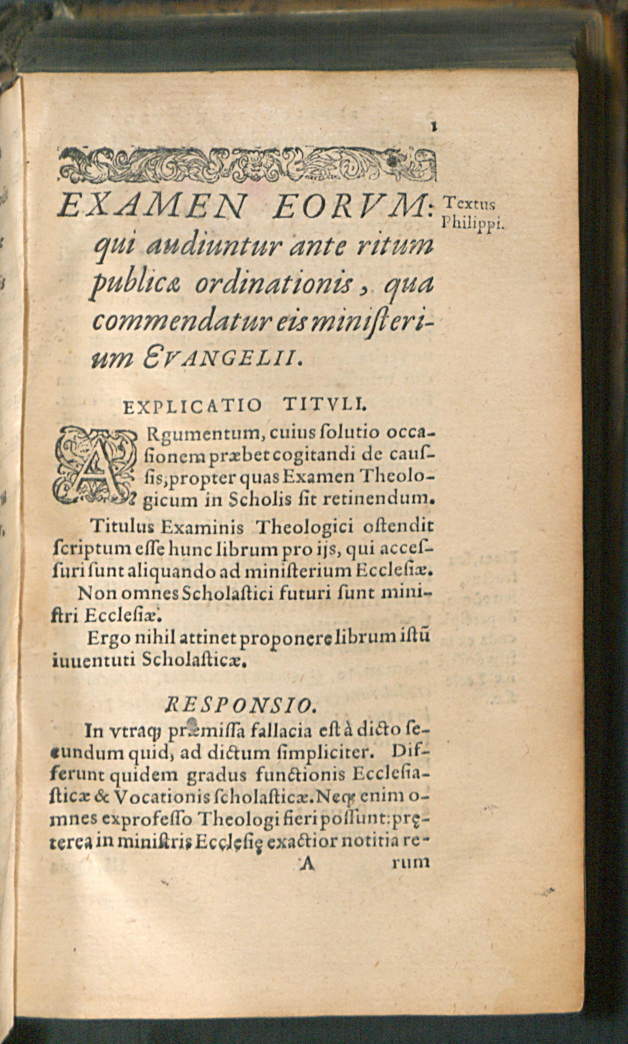 EXAMEN THEO-||logicum,|| REVEREN-||DAE MEMORIAE PHI-||LIPPI MELANTHONIS, QVON-||dam Germaniae totius Praeceptoris, de Ec-||clesia Filij Dei, & de Scholis opti-||mè mereri.|| CVM || Explicationibus eiusdem Examinis, accommo-||datis ad vsum iuuentutis scholasticae:|| Ex praelectionibus CHRISTOPHORI PEZE-||LII, sacrae Theologiae Doctoris, in Schola Bre-||mensi exceptis.|| EDITIO ALTERA || priori emendatior.||
