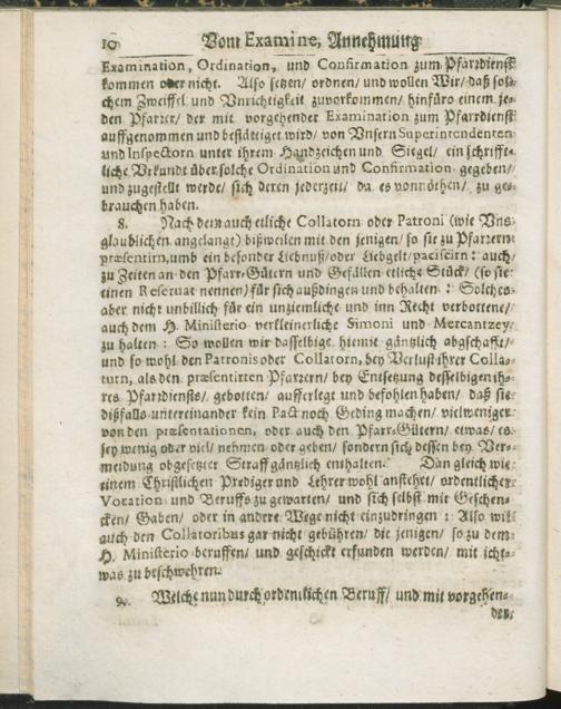 II. Von Examine, Annehmung und Beurlaubung der Prediger und Kirchendiener: ...