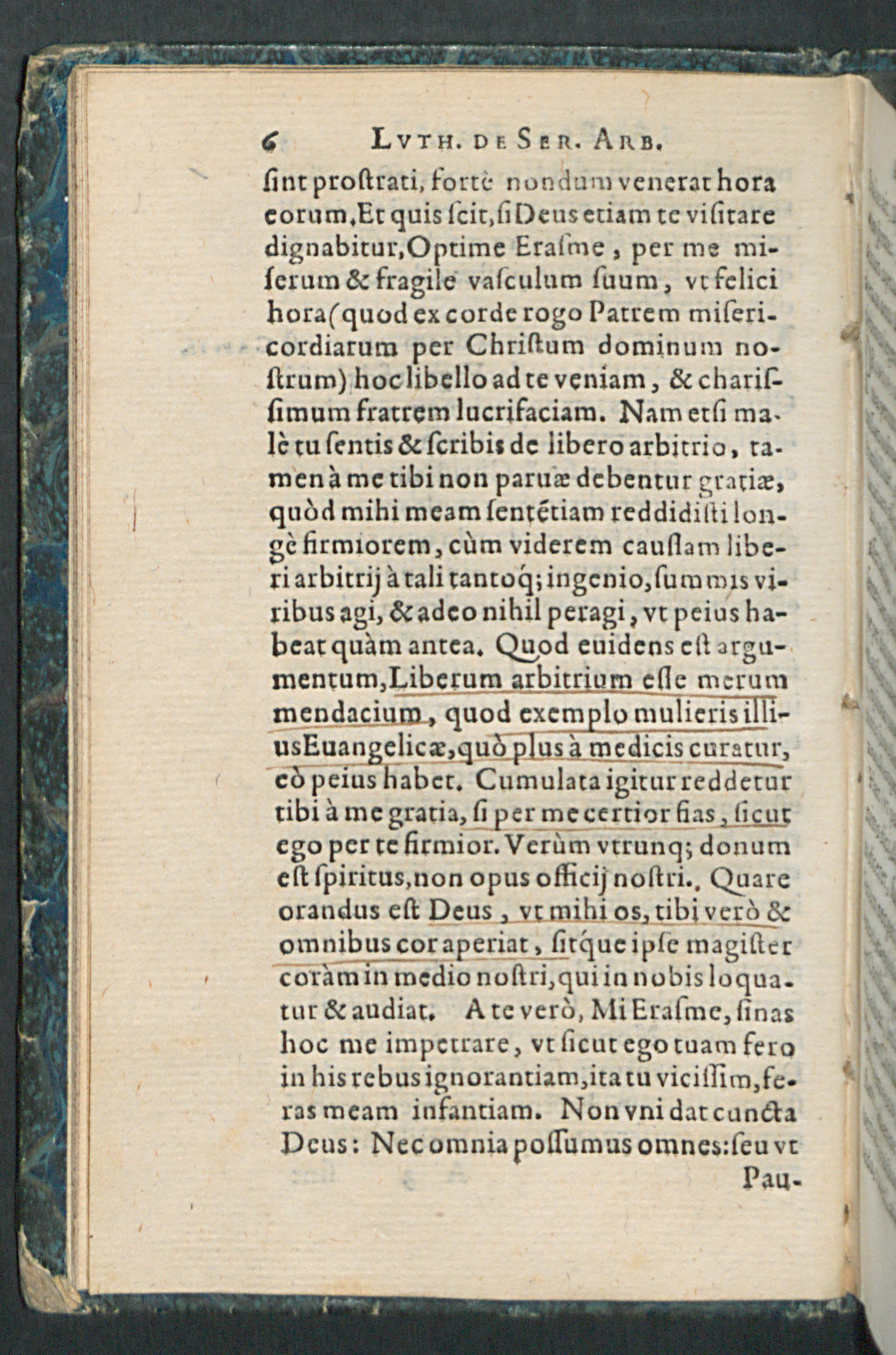 DE SERVO ARBI-||TRIO || MARTINI || LVTHERI, AD D.|| ERASMVM ROTE-||RODAMVM,|| Liber illustris:|| DESIDERATIS IAM PRI-||DEM EXEMPLARIBVS, CON-||tra veteres et nouos Pelagianos, in vsum studiosae || iuuentutis, & propagandae verita-||tis ergò;|| Nunc denuò, cum praefatione ad Lectorem,|| editus.|| [v. (Iacobus Kimedoncius D.||)]