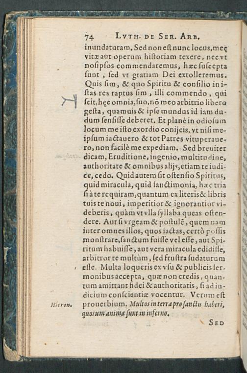 DE SERVO ARBI-||TRIO || MARTINI || LVTHERI, AD D.|| ERASMVM ROTE-||RODAMVM,|| Liber illustris:|| DESIDERATIS IAM PRI-||DEM EXEMPLARIBVS, CON-||tra veteres et nouos Pelagianos, in vsum studiosae || iuuentutis, & propagandae verita-||tis ergò;|| Nunc denuò, cum praefatione ad Lectorem,|| editus.|| [v. (Iacobus Kimedoncius D.||)]
