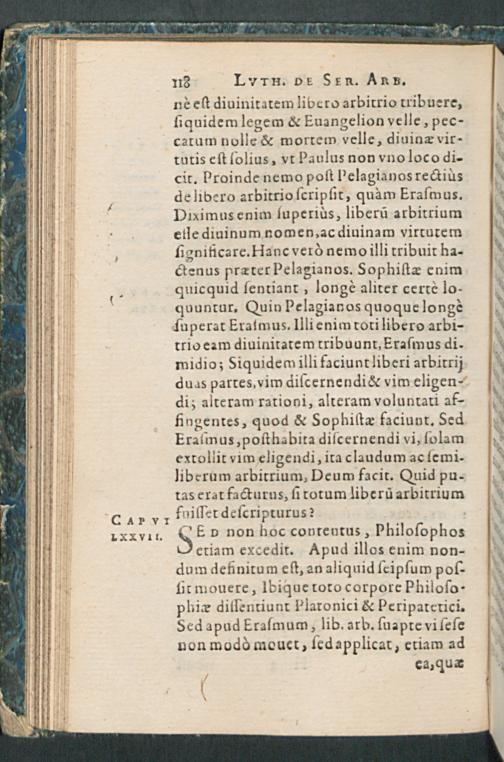 DE SERVO ARBI-||TRIO || MARTINI || LVTHERI, AD D.|| ERASMVM ROTE-||RODAMVM,|| Liber illustris:|| DESIDERATIS IAM PRI-||DEM EXEMPLARIBVS, CON-||tra veteres et nouos Pelagianos, in vsum studiosae || iuuentutis, & propagandae verita-||tis ergò;|| Nunc denuò, cum praefatione ad Lectorem,|| editus.|| [v. (Iacobus Kimedoncius D.||)]