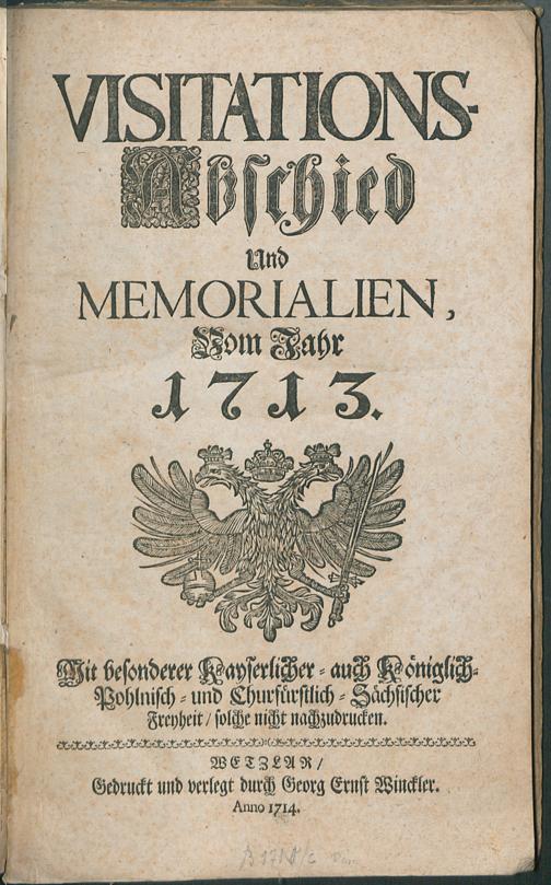 Visitations-Abschied Und Memorialien, Vom Jahr 1713 / [Kayserl. Cam[m]er-Gericht]