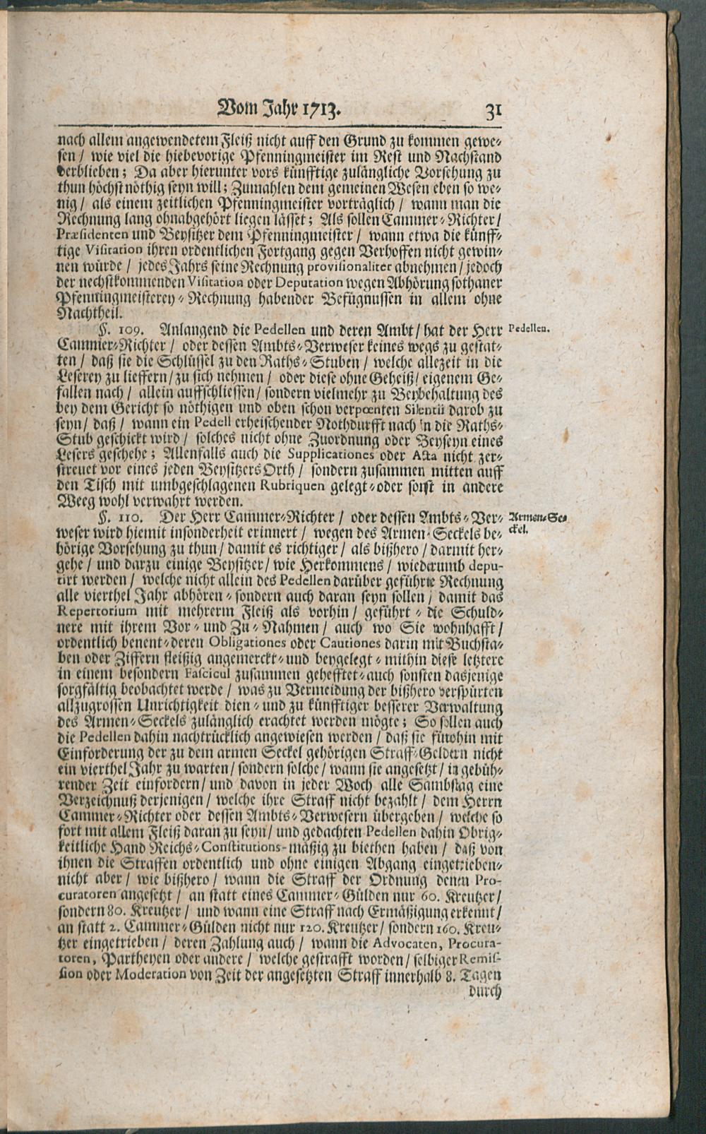 Visitations-Abschied Und Memorialien, Vom Jahr 1713 / [Kayserl. Cam[m]er-Gericht]