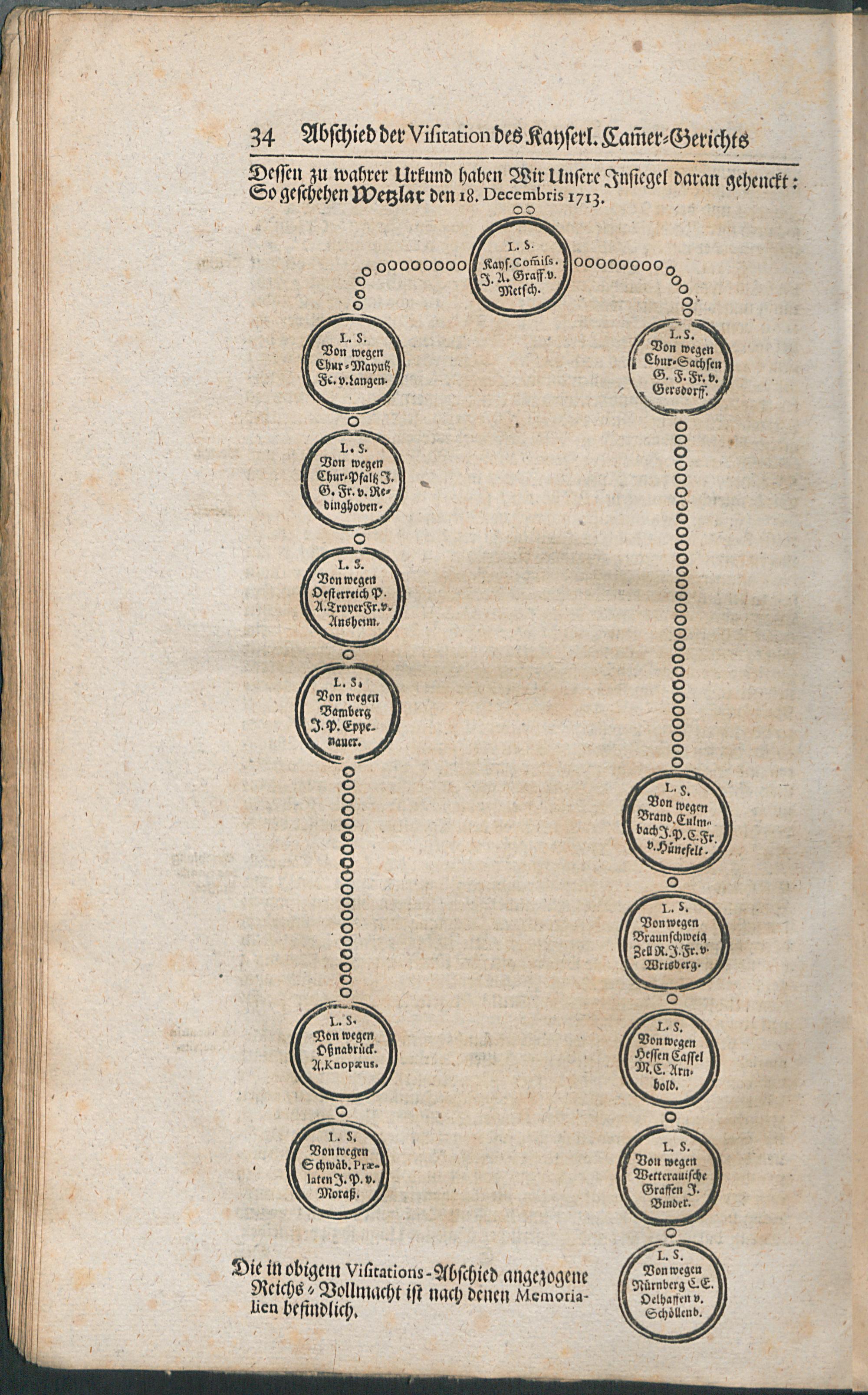Visitations-Abschied Und Memorialien, Vom Jahr 1713 / [Kayserl. Cam[m]er-Gericht]