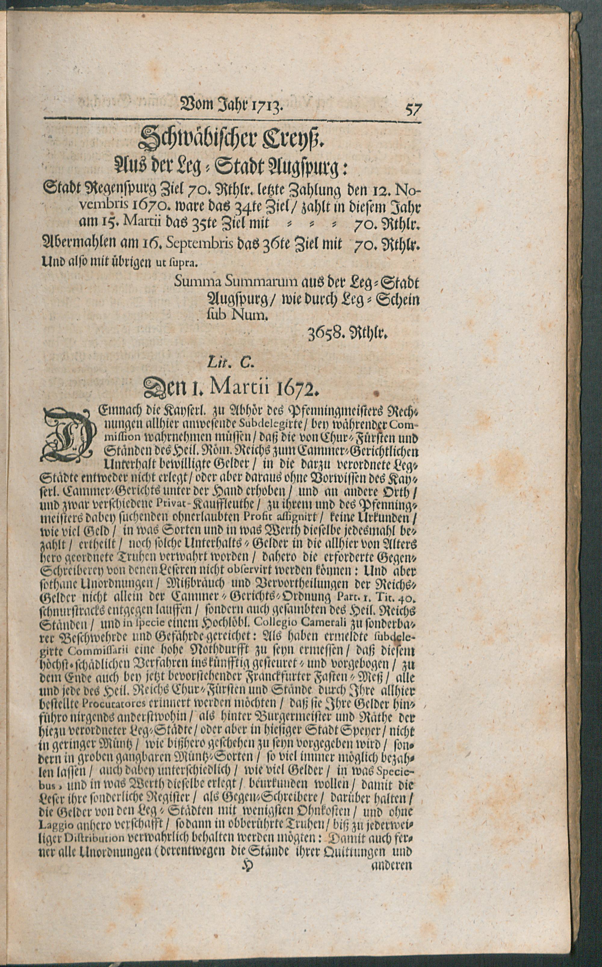 Visitations-Abschied Und Memorialien, Vom Jahr 1713 / [Kayserl. Cam[m]er-Gericht]