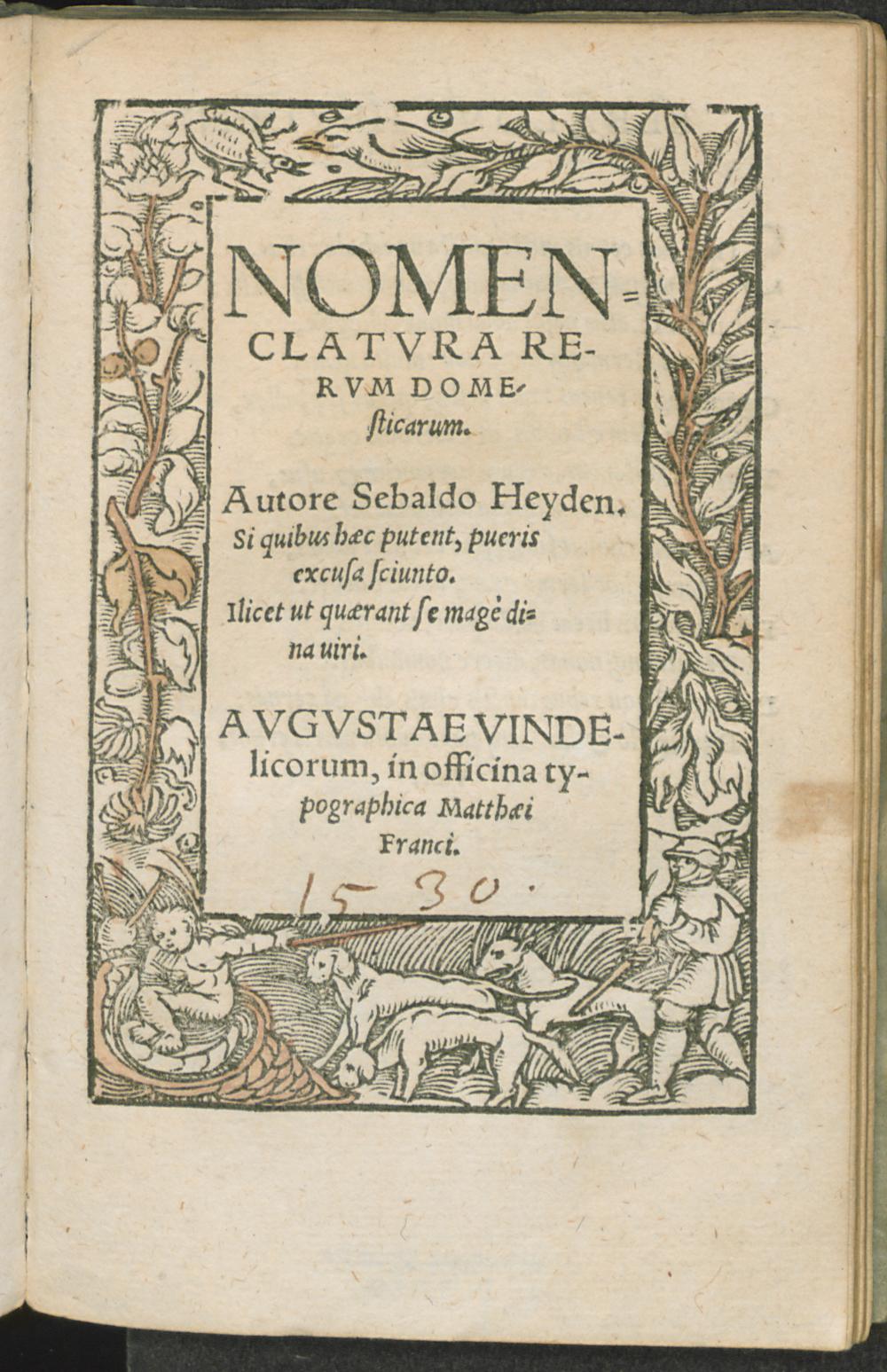NOMEN=||CLATVRA RE-||RVM DOME-||sticarum.|| Autore Sebaldo Heyden.|| ... ||