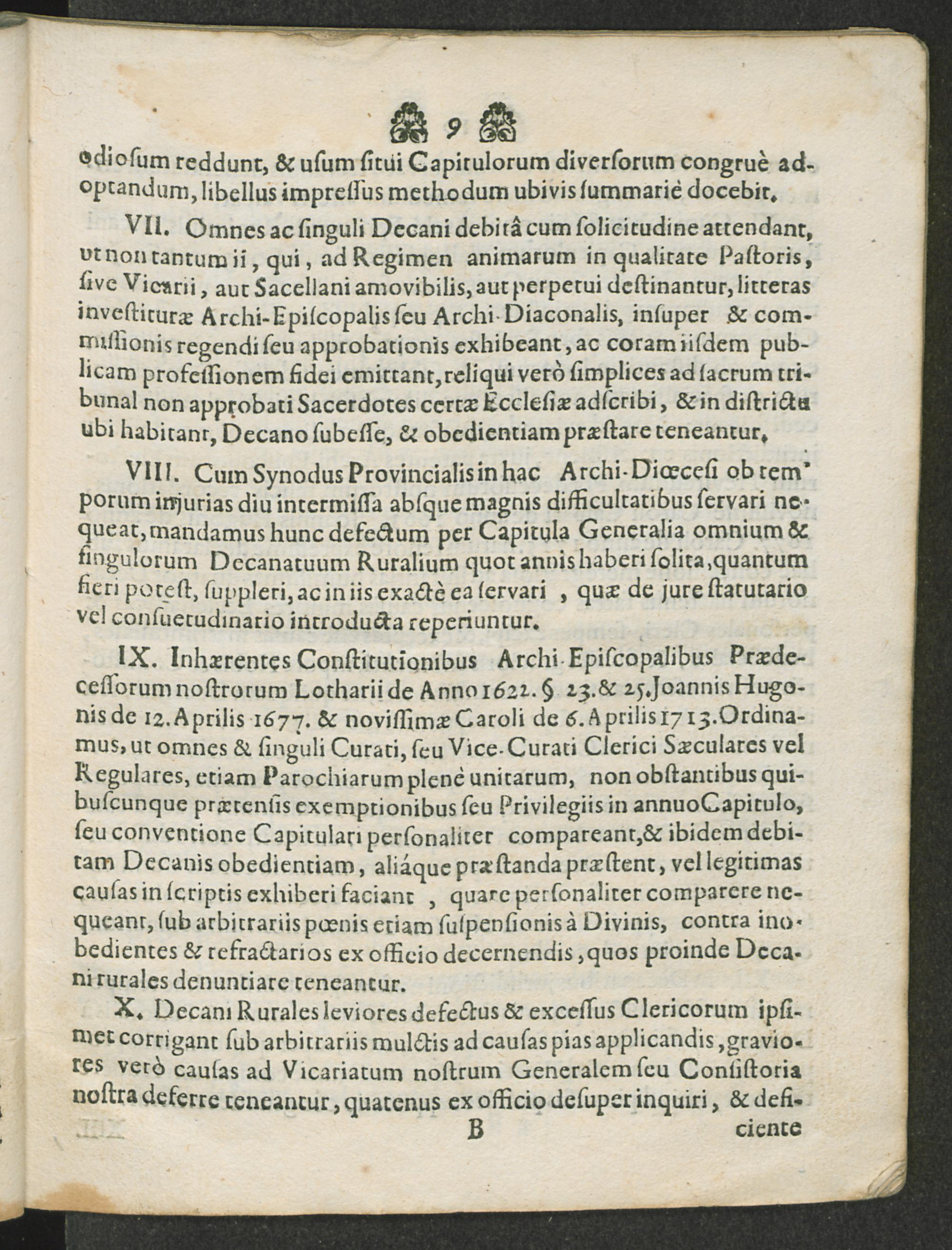 Caput primum. De Officiis, Obligationibus, vita, & honestate Cleri, praefertim c...