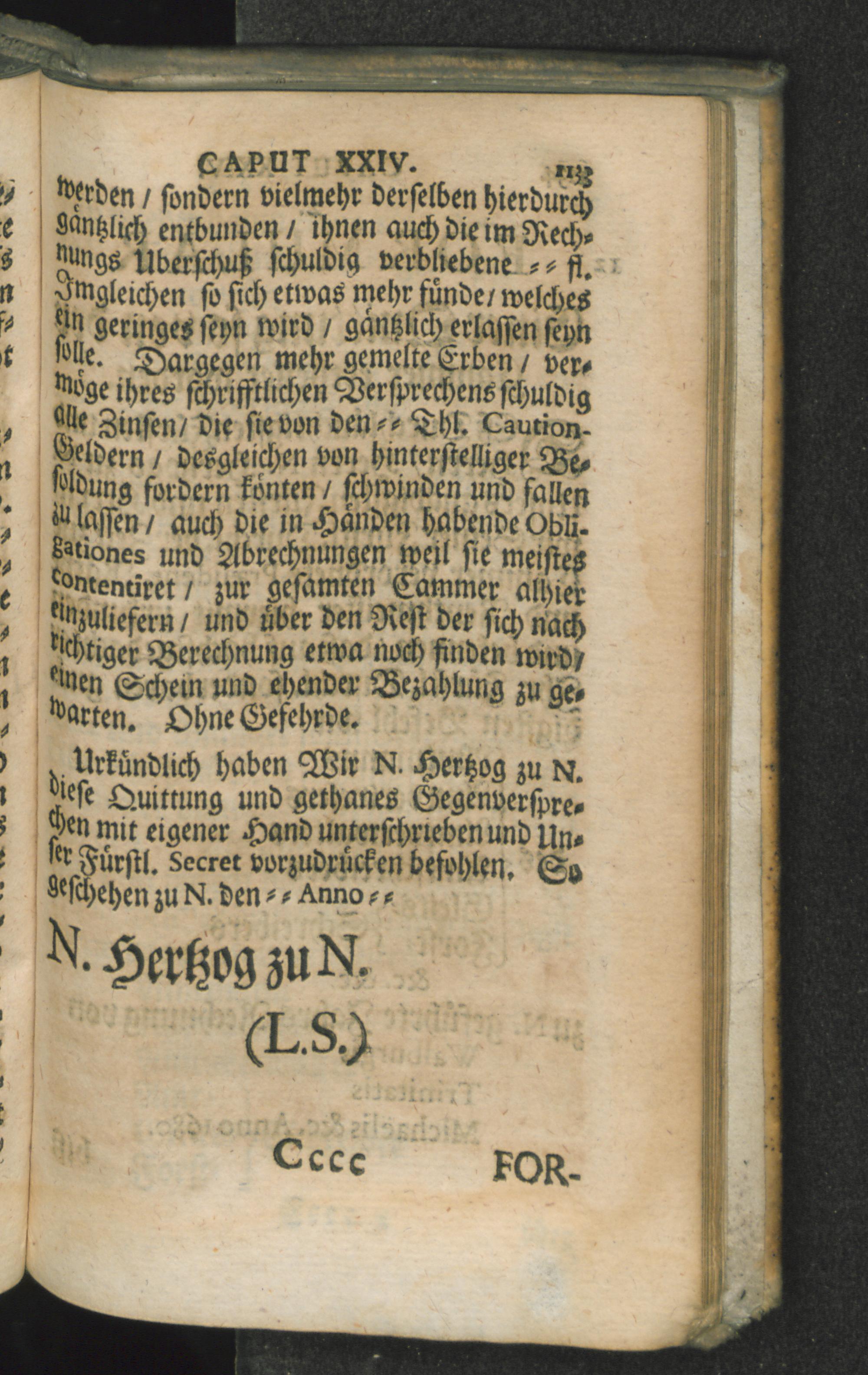Caput XXIV. Von der Quittung so dem Rechnungsfuehrer nach richtig abgelegter Rechnung...
