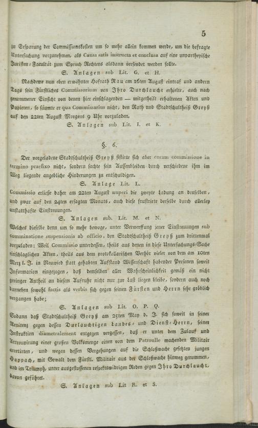 Unterthänigste Supplication und Bitte pro Cl.me concedendo et impertiendo documento denegatorum ex adverso petitorum appellationis processuum, in Sachen des Rath und Stadt-Schultheiß Greyß, Contra die von des regierenden Herrn Fürsten zu Wied-Neuwied angeordnete Untersuchungs-Commission über verschiedene dem Rath und Stadt-Schultheiß Greyß zu Neuwied angeschuldigte Verbrechen : mit Anlagen von Lit. A. bis AA. ; Exib. den 23sten Sept. 1801 / ... Gombel