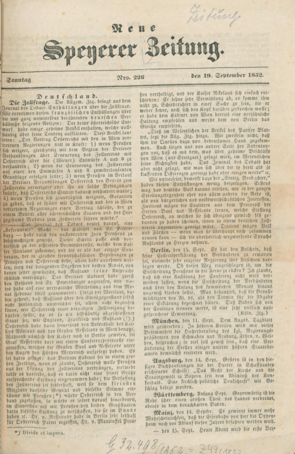 Neue Speyerer Zeitung. 1816-1853