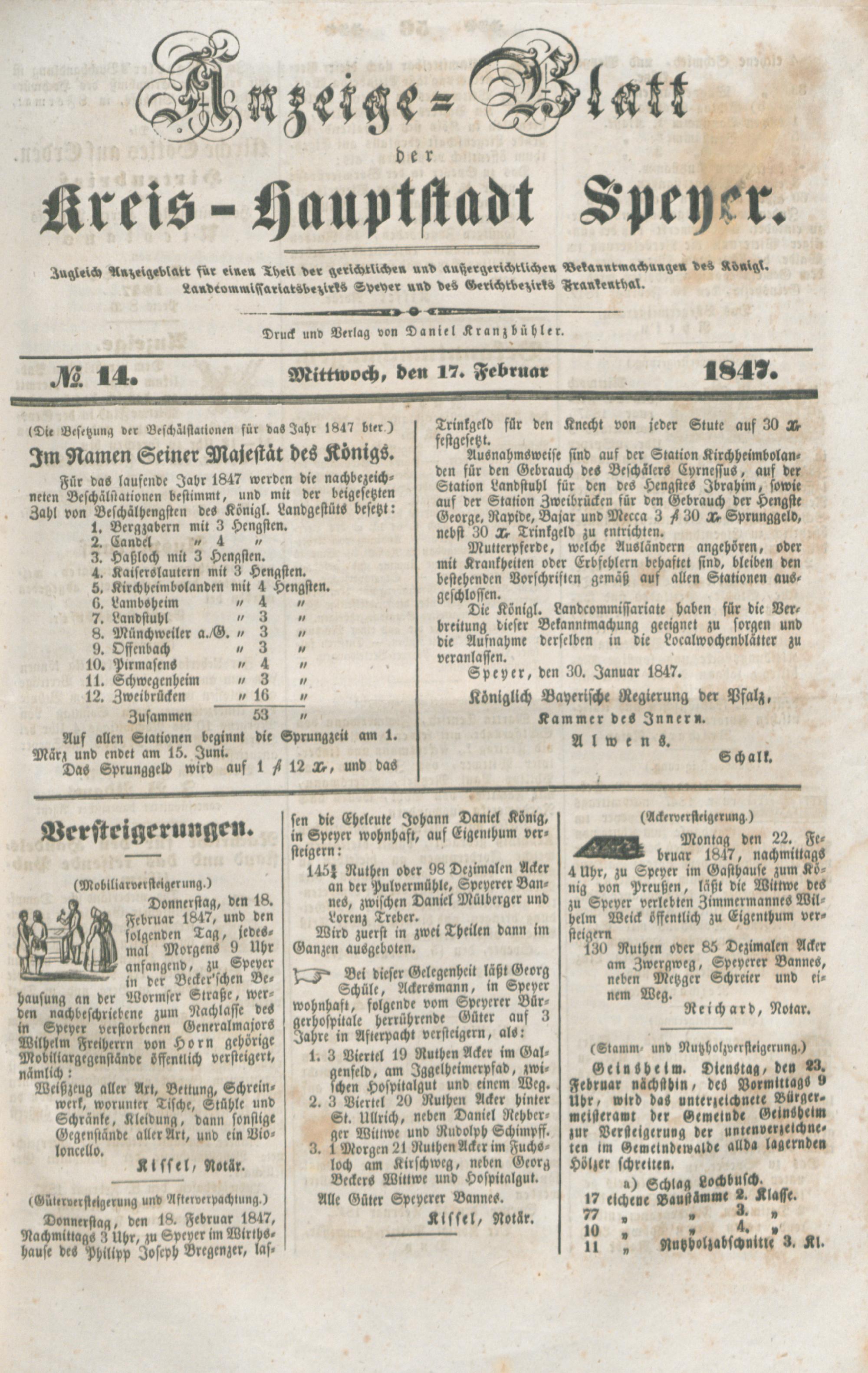 Anzeige-Blatt der Kreishauptstadt Speyer....