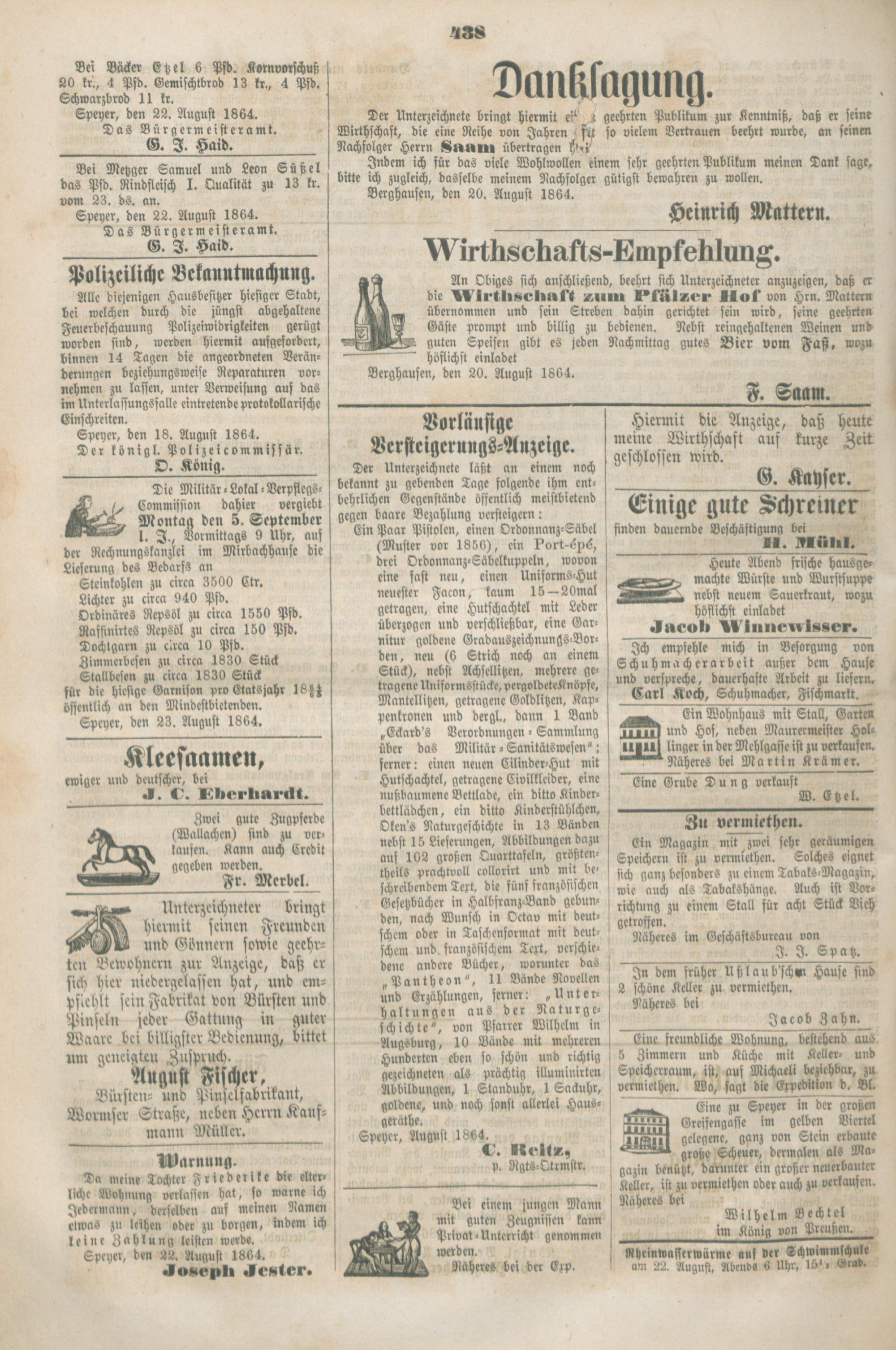 Anzeige-Blatt der Kreishauptstadt Speyer....