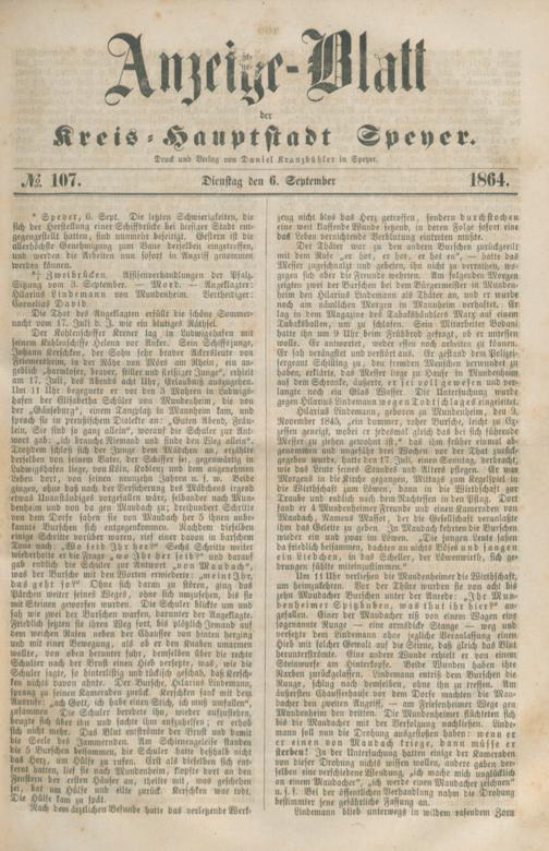 Anzeige-Blatt der Kreishauptstadt Speyer....