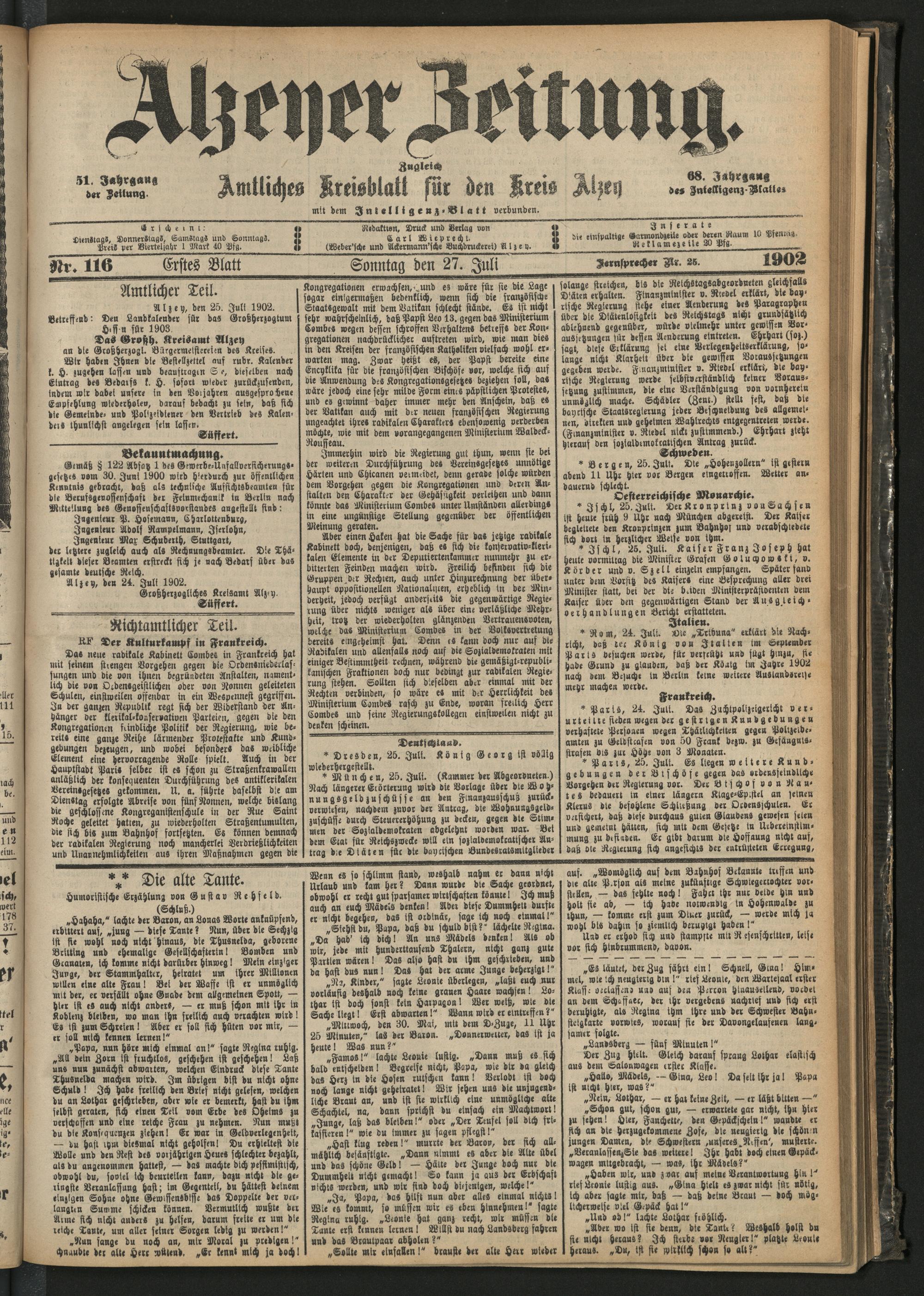 Alzeyer Zeitung. 1851-1935