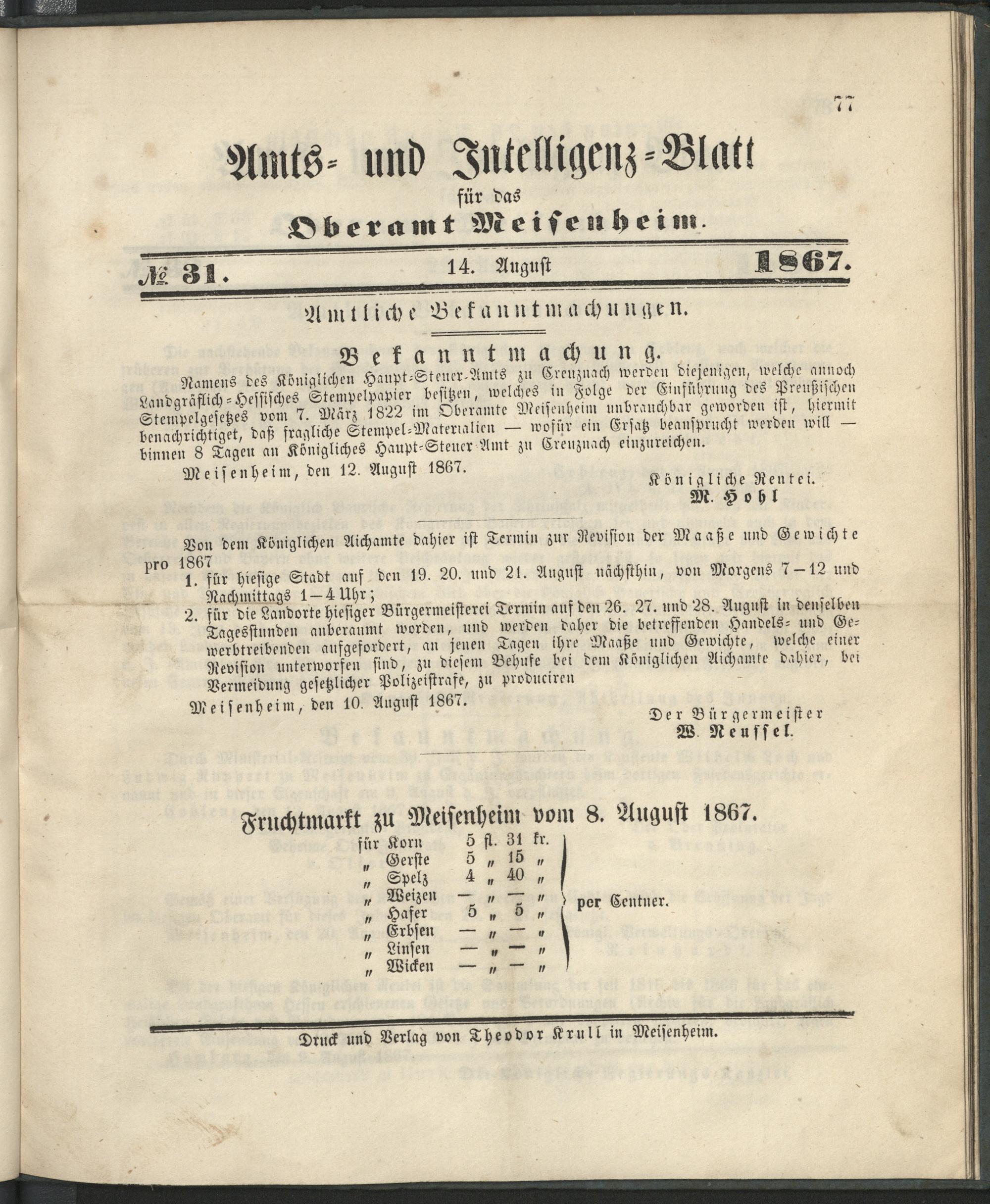 Amts- und Intelligenzblatt des Landgräflich-Hessischen Oberamts Meisenheim. 1842...