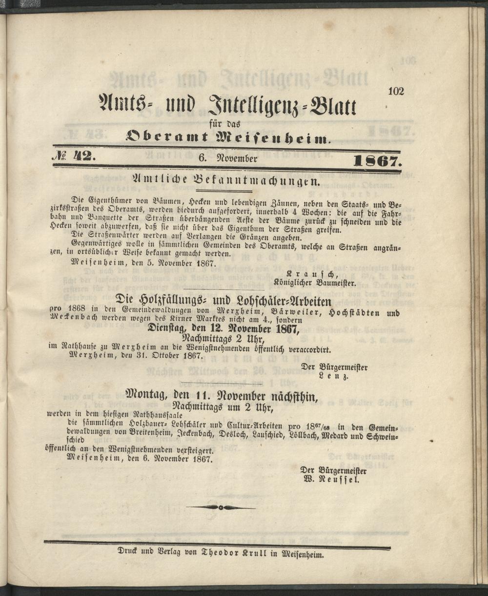 Amts- und Intelligenzblatt des Landgräflich-Hessischen Oberamts Meisenheim. 1842...