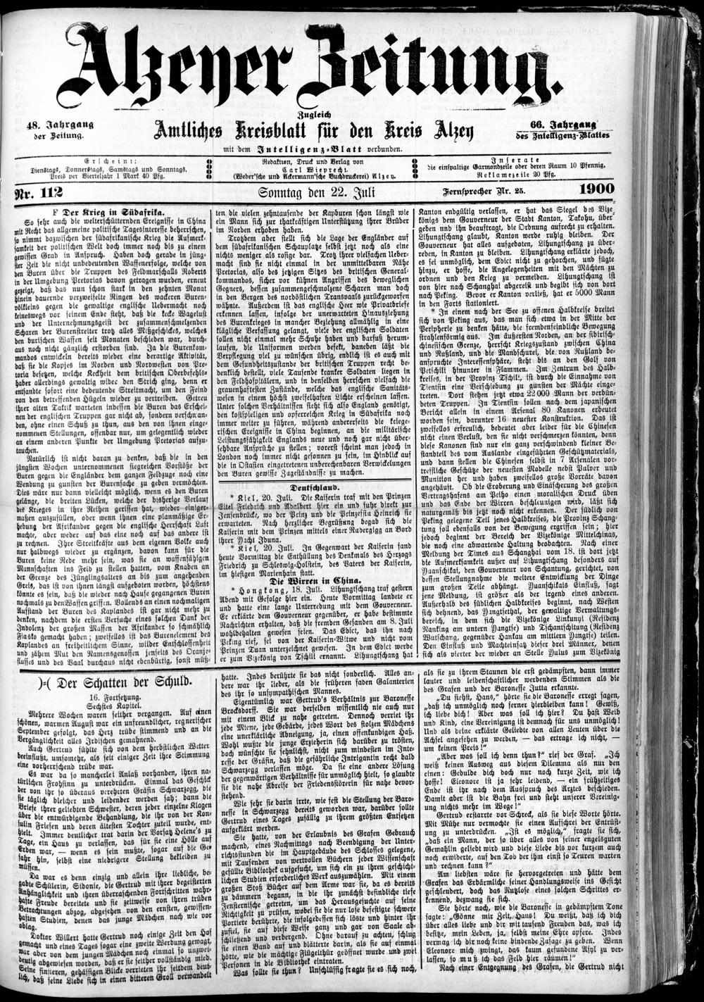 Alzeyer Zeitung. 1851-1935