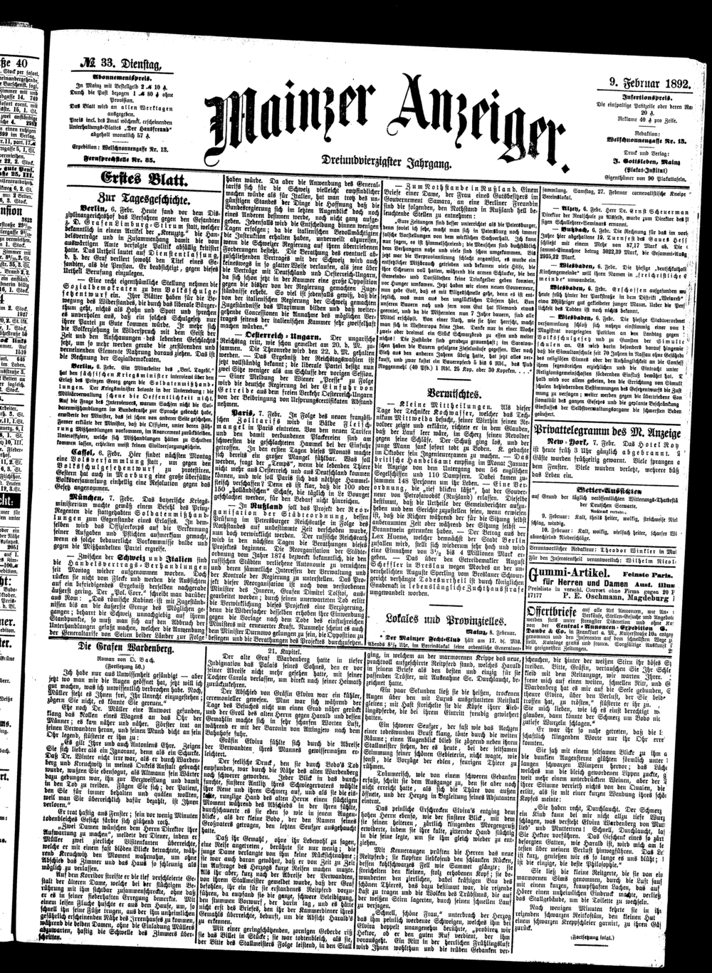 33 (9.2.1892) Erstes Blatt
