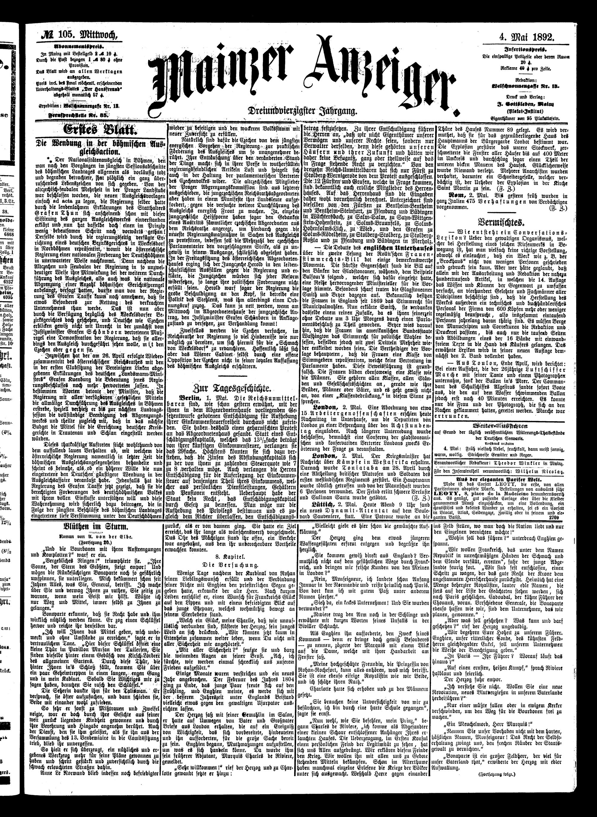 105 (4.5.1892) Erstes Blatt
