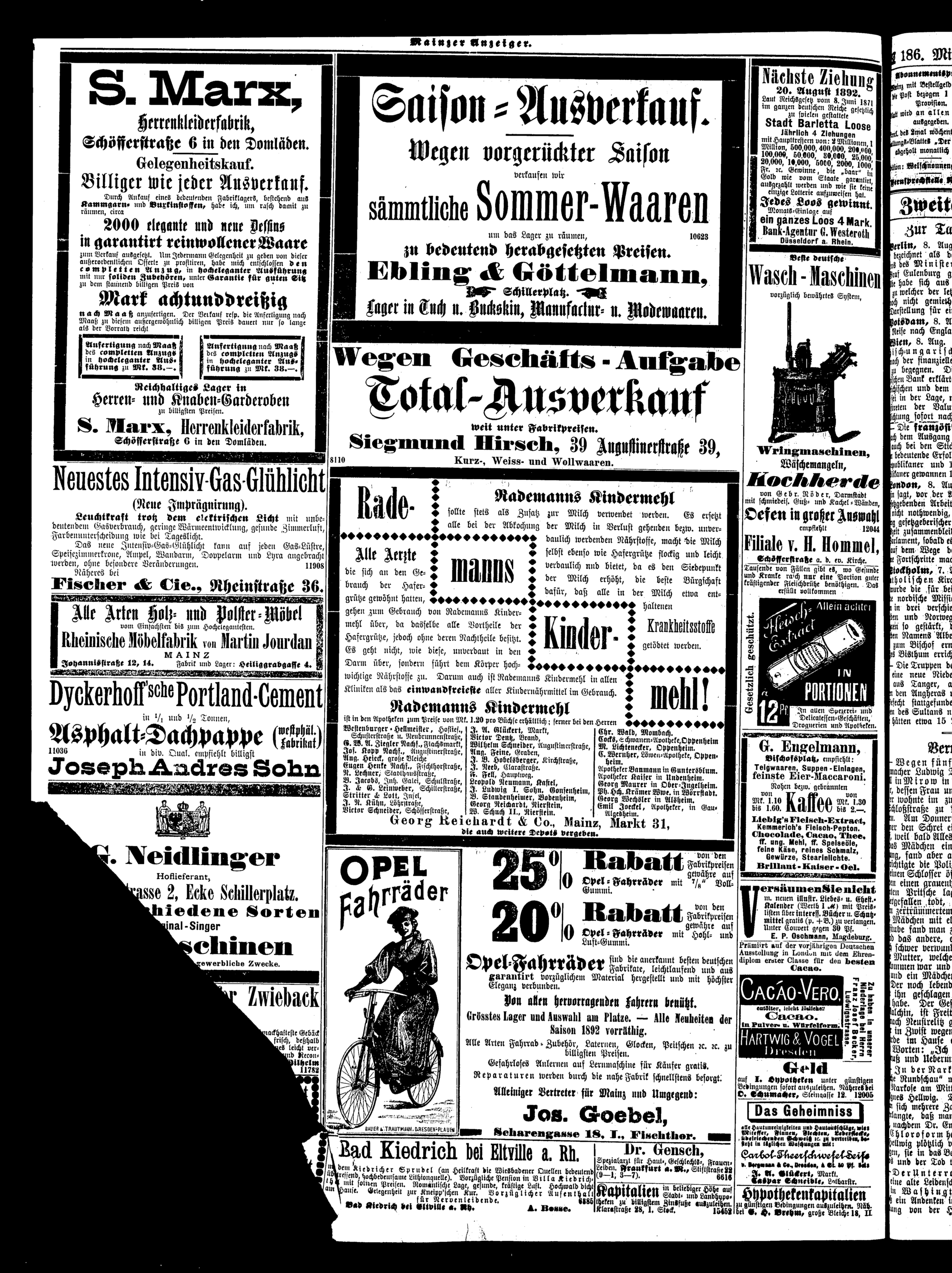 186 (10.8.1892) Erstes Blatt