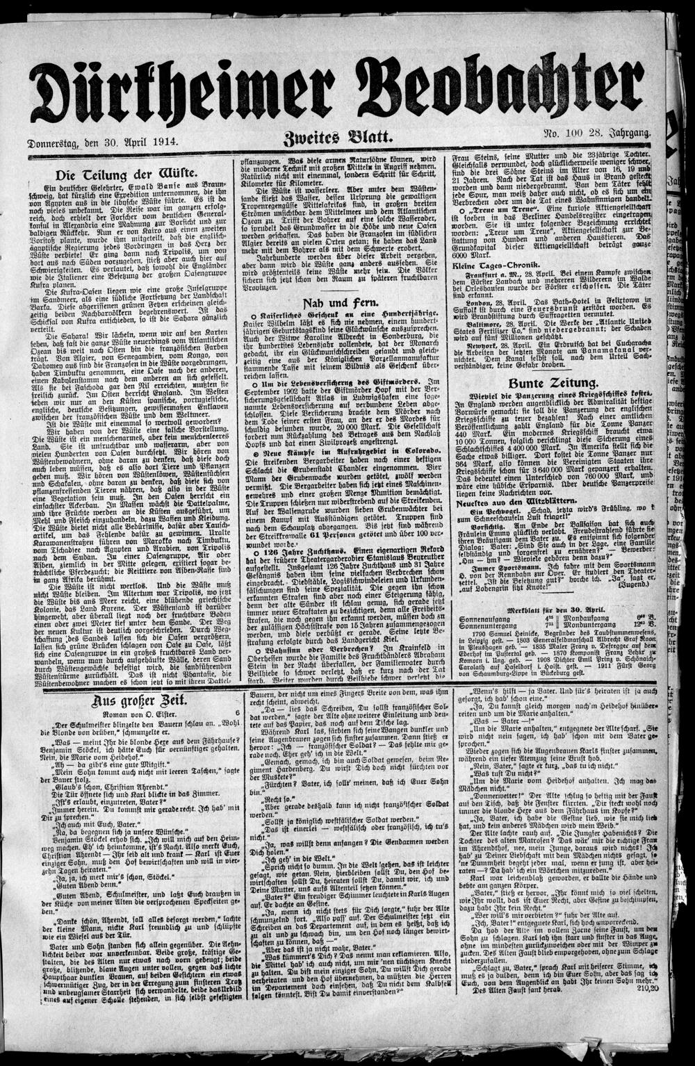 30.4.1914 (No. 100) Zweites Blatt