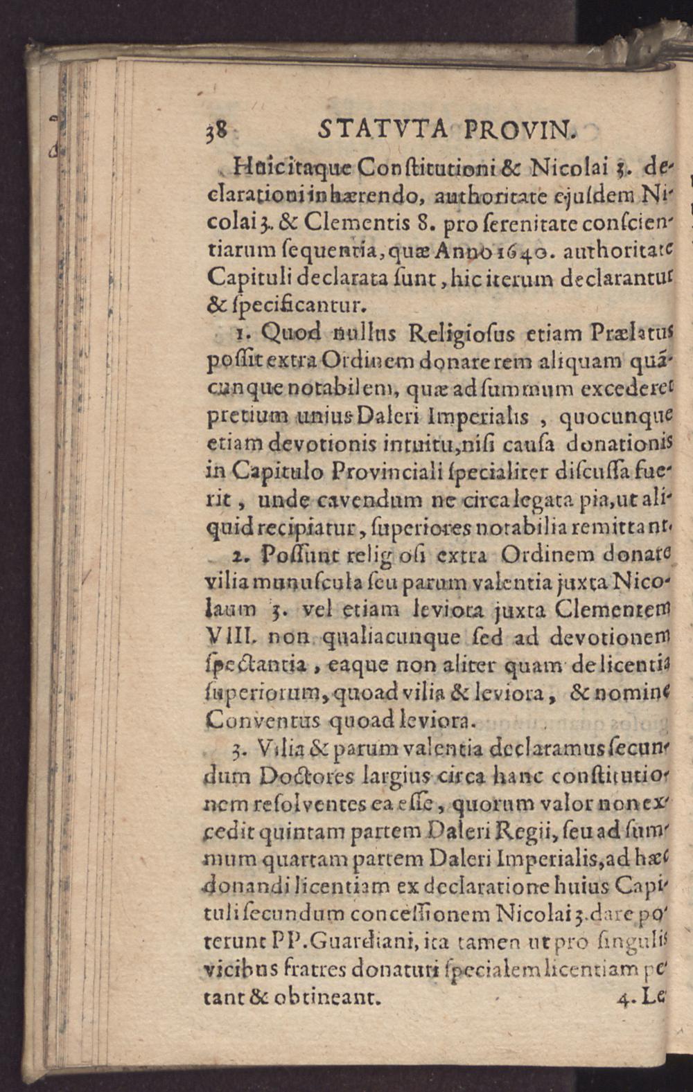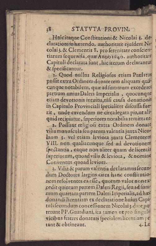 Statvta Provincialia Almae Nostrae Provinciae Coloniensis Fratrvm Minorvm : recollectorum in Capitulo Provinciali 1649 die 22. Maij in vigilia Pentecostes Anno 1649. in Conventu nostro Coloniae legitimè celebrato revisa aejuxta Recollectorum institutum auctas & approbata