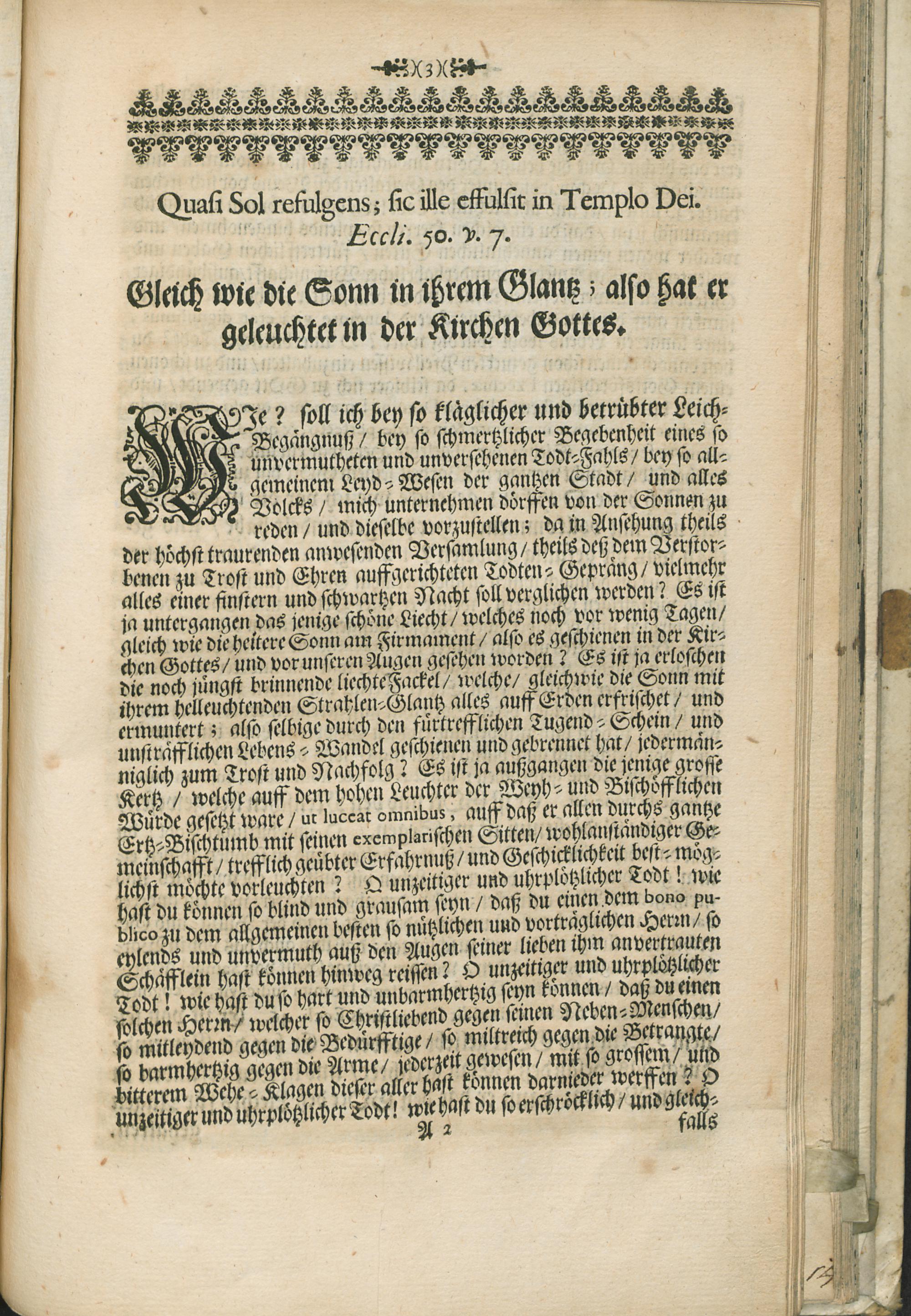 Leich- und Lob-Predig : Darinn zu Unsterblicher Gedächtnuß Und Ewigen Tugend-Ruhm Der Hoch-Würdigster/ und Hoch-Edler Herr H. Joannes Petrus Verhorst Weyland Bischoff zu Arba Chur-Trierischer Weyh-Bischoff, Vicarius Generalis und Officialis &c. Unter dem Vorbildt Der Sonnen Bey Drey-Tägiger Leich-Begängnuß Zu Trier In der Collegiat Kirchen S. Simeonis Vorgestellt / Von P. Hermanno Mylius Der Gesellschafft Jesu Priesteren. Jm Jahr 1708. den 16ten Tag Heu-Monats