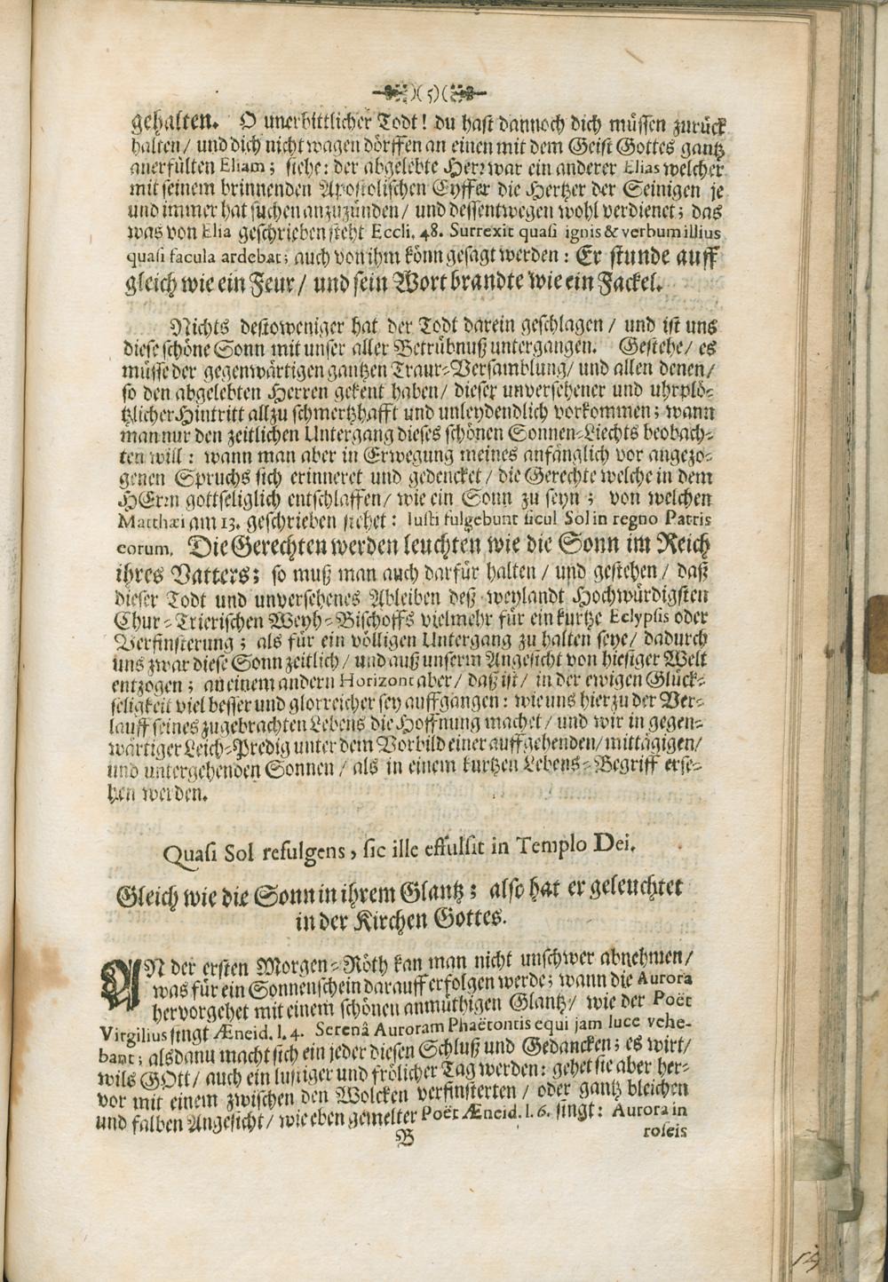 Leich- und Lob-Predig : Darinn zu Unsterblicher Gedächtnuß Und Ewigen Tugend-Ruhm Der Hoch-Würdigster/ und Hoch-Edler Herr H. Joannes Petrus Verhorst Weyland Bischoff zu Arba Chur-Trierischer Weyh-Bischoff, Vicarius Generalis und Officialis &c. Unter dem Vorbildt Der Sonnen Bey Drey-Tägiger Leich-Begängnuß Zu Trier In der Collegiat Kirchen S. Simeonis Vorgestellt / Von P. Hermanno Mylius Der Gesellschafft Jesu Priesteren. Jm Jahr 1708. den 16ten Tag Heu-Monats