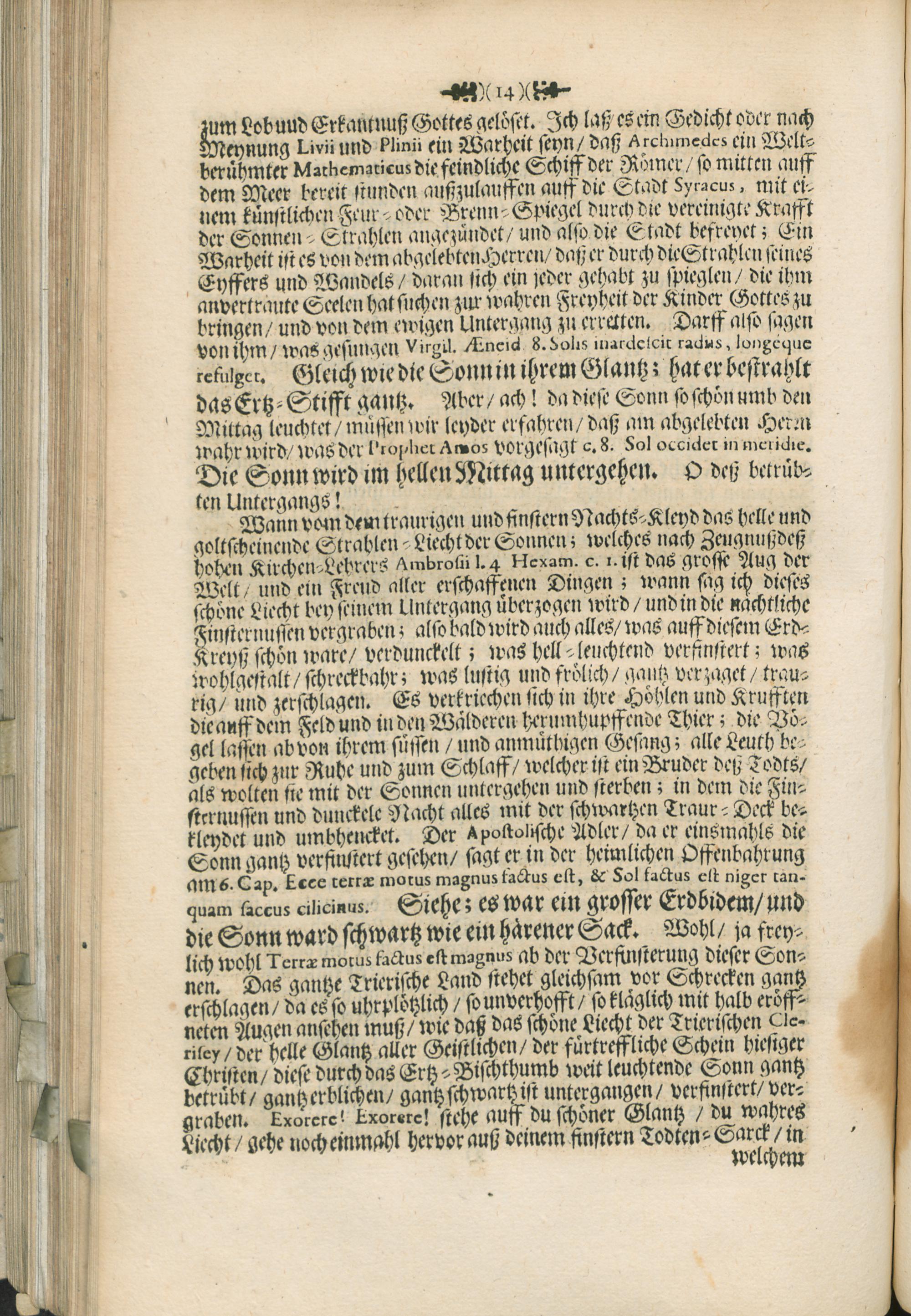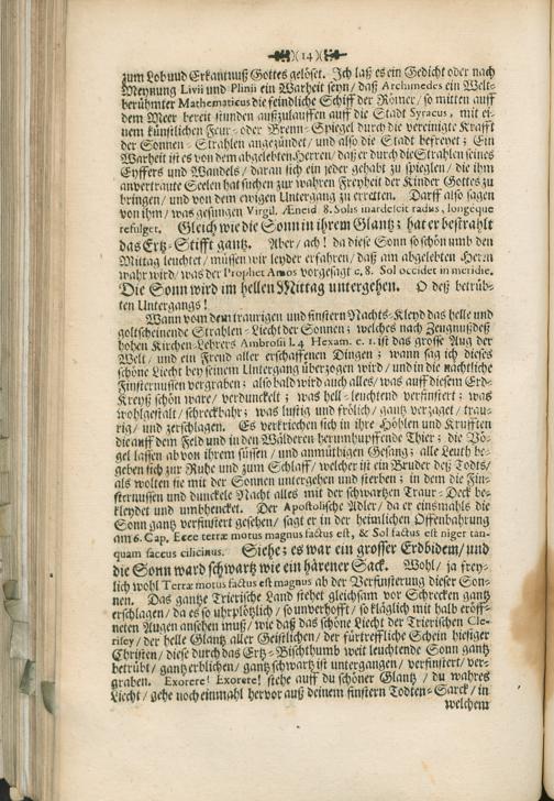 Leich- und Lob-Predig : Darinn zu Unsterblicher Gedächtnuß Und Ewigen Tugend-Ruhm Der Hoch-Würdigster/ und Hoch-Edler Herr H. Joannes Petrus Verhorst Weyland Bischoff zu Arba Chur-Trierischer Weyh-Bischoff, Vicarius Generalis und Officialis &c. Unter dem Vorbildt Der Sonnen Bey Drey-Tägiger Leich-Begängnuß Zu Trier In der Collegiat Kirchen S. Simeonis Vorgestellt / Von P. Hermanno Mylius Der Gesellschafft Jesu Priesteren. Jm Jahr 1708. den 16ten Tag Heu-Monats