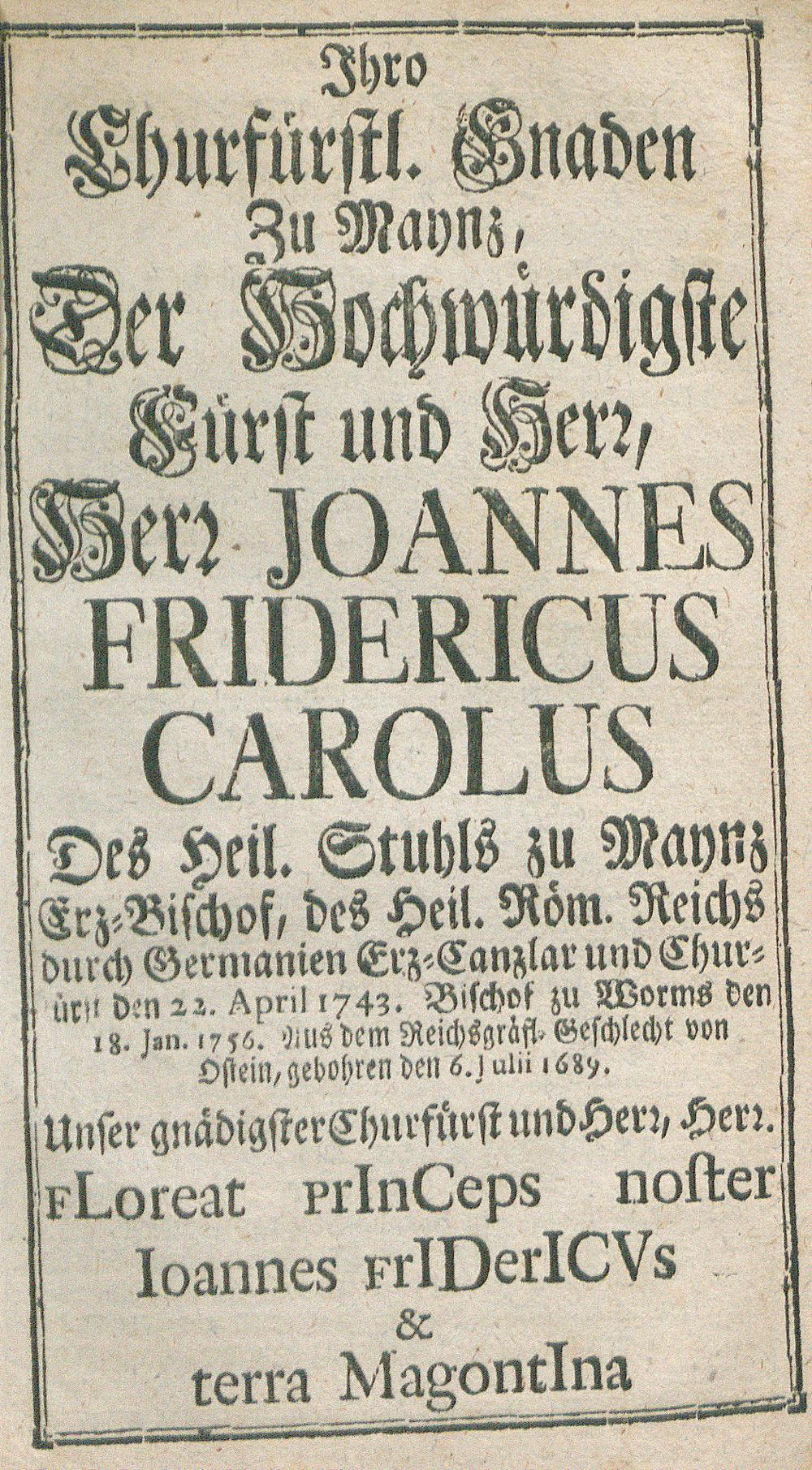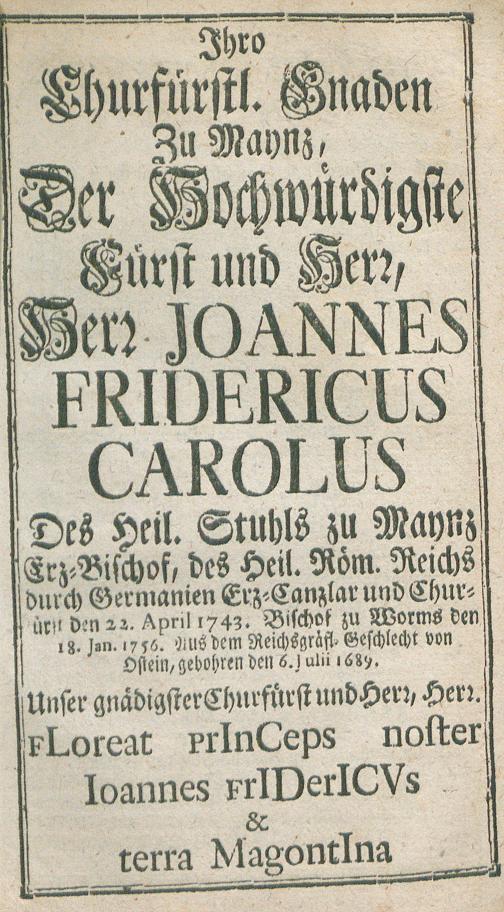 Ihro Churfürstl. Gnaden zu Mayntz.