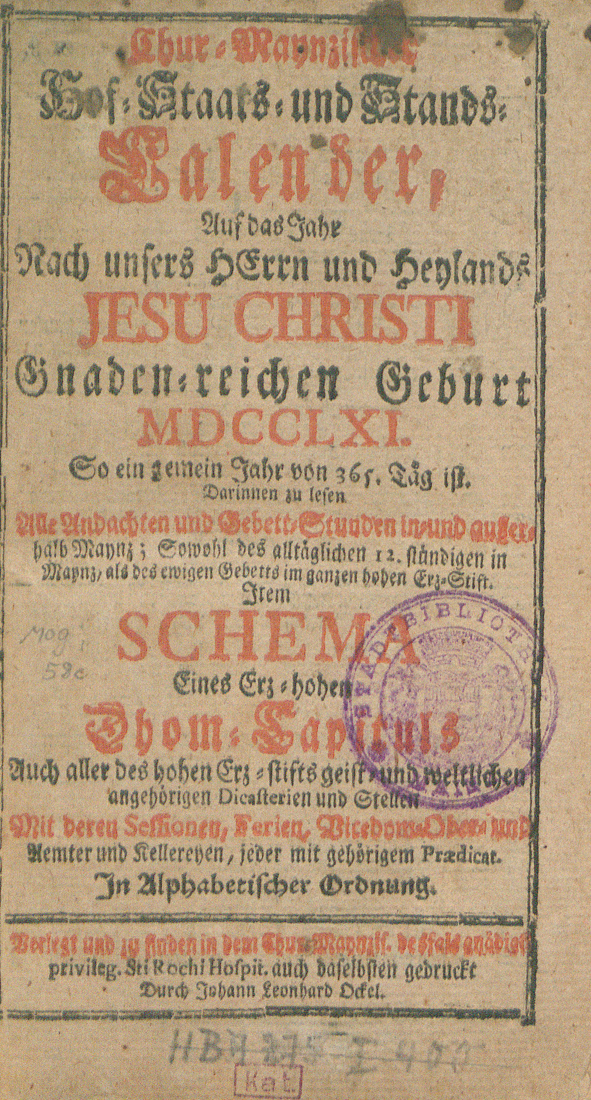 Chur-Maynzischer Hof-, Staats- und Stands-Calender